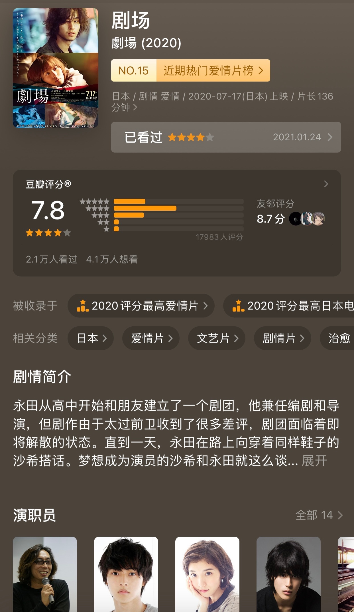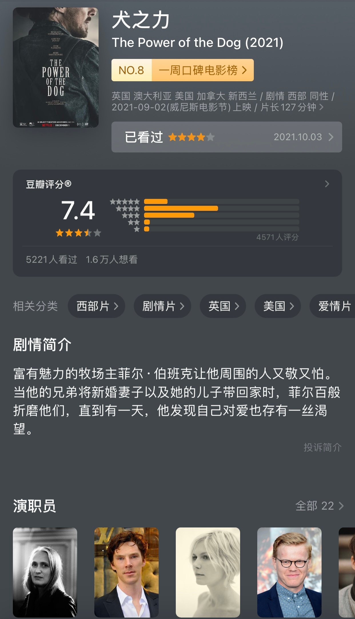今天看这个吧放假第3⃣️天啦,宅家的小猴们是不是已经开始片荒了。整理了一下我最近看的9部影片,从悬疑到两性关系都是值得一看的高分作品,大家可以🐎起来啦! 1⃣️《鱿鱼游戏》 我男神李政宰的新片!!有点像动物世界+饥饿游戏,从大爽片的模式中挖掘一些人性难以逾越的黑暗角落。如果喜欢不闹鬼怪的惊悚片的朋友,假期想看一些不用太动脑筋的剧集可以刷起来。如果被李政宰迷住了,可以看一下同为大爽片的《从邪恶中拯救我》,同类型的还可以看下《赌博默示录》、《弥留之国的爱丽丝》还有《欺诈游戏》和《动物世界》。 2⃣️《摩登爱情》 《摩登爱情》第2季更精彩啊!每集都想按头推荐,和上一季不同的是,少了很多识别度高的明星,但情节和故事更加抓心了。 3⃣️《当我们崛起时》 看似是一部少数群体争取权益的影片,却深刻探讨了性别问题在社会交往间的关系。即便我们作为顺性别,在不同的维度和社会话题上,我们需要公开主动的发声和用行动去支持,才可以让我们在争取平等的路上更进一步。 记得听过一个播客中有这样一段表述“所谓的保持中立或者选择看不见,并不是对少数派和相对弱势那一边的支持和尊重。在不同的维度和社会话题上,我们需要公开主动的发声和用行动去支持,才可以让我们在争取平等的路上更进一步。” 4⃣️《机智的医生生活第二季》 只要五口人出现就是满分!依依不舍地看完第二季,真的没法想象还要等多久才能继续见到他们,他们已经是我们生活里的朋友了啊呜呜呜。所有没看机医的这个假期补完吧,人生必须拥有的美好体验啊朋友们! 5⃣️《虎与龙》 编剧宫藤关九郎真的是名副其实的鬼才,他的作品就是脑洞大且不出错的代表。之前给大家推荐过《我家的故事》真的非常好看,大家如果追完可以顺便看这部,毕竟很多人看完都说刷新了自己对五星剧的标准哈哈。 6⃣️《天桥上的魔术师》 这部剧是根据同名小说改编的,导演杨雅喆拍过《女朋友,男朋友》,他会把对动荡时期的愤怒拍成心里仍然想要朝着光亮处前行的感觉,即使在黑暗中、在谷底,你也一定会找到那个出口。这其中也会带出那个年代大环境下人们的无奈,因为这些「疼」会从还在上小学的孩子们身上影射出来,看的时候会特别难受。 7⃣️《犬之力》 这部电影是本尼今年的新片,讲述的是剧情比较复杂,也是和他整个成长环境和原生家庭分不开的。不过剧情有反转哈哈,看完以后觉得这种角色的类型又被他拿稳了。 8⃣️《莫娣》 莫娣这部电影是根据真实故事改编的,看的时候完全就是视觉盛宴般的享受,就算没有主线细水长流的爱情,光看影片里女主的画和风景也很满足了。所以啊,即使生活是灰暗的,但至少爱情和画画是她的彩色人生。 9⃣️《剧场》 看这部电影的时候让我想起了《花束般的恋爱》,同样是两个人相处之间的爱情故事,只不过《剧场》会带点小丧气,可能正是因为这样有点扎心的爱情,会比轰轰烈烈的故事更能戳中我吧。不过结局还是要夸一夸,这里我就不剧透了,当你发现这部电影快要结束的时候,「剧场」里的这部舞台剧也落幕了。 花式种草