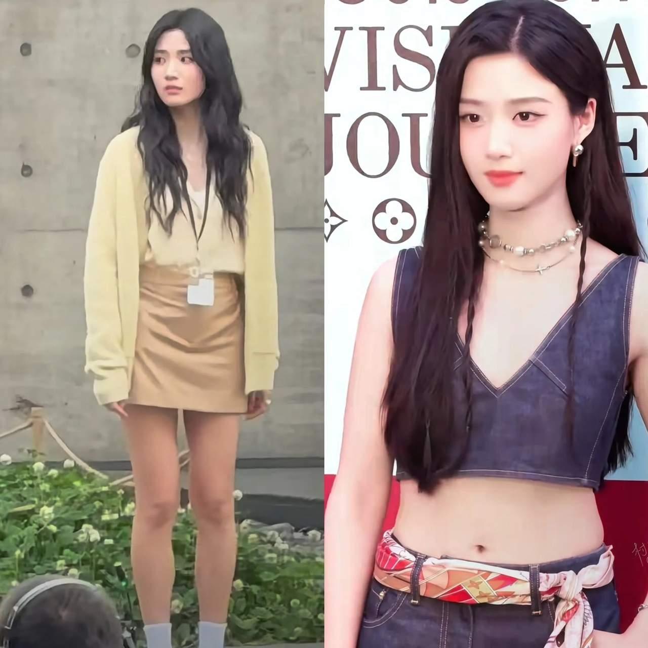 我知道卢昱晓的腿是怎么回事了, 她的腿不是有毛病, 也不是她的医生父母不重视, 相反她的医生父母很重视。 她在最近的新剧宣传上, 腿部的问题彻底暴露了, 她是明显的罗圈腿, 而且看着有点严重。 如果没有旁边的蓝格子裙女配的衬托, 其实也没那么夸张, 偏偏旁边的蓝格子裙女配有一双笔直的大长腿, 才让人直观的看出卢昱晓腿部的问题。 但是在其他的照片中, 卢昱晓的腿又变得很直。 这种忽弯忽直的变化, 让人不由得怀疑, 她是不是穿了矫正腿型的鞋垫之类的, 因为矫正的幅度比较大, 才让她的走路姿势一直被大家诟病。