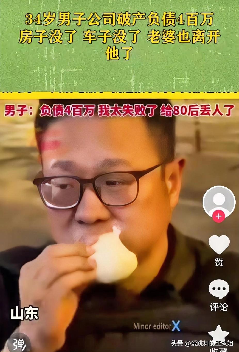一男子发视频称,今年34岁,公司破产了,负债4百万元。破产的那一刻,老婆毫不留情