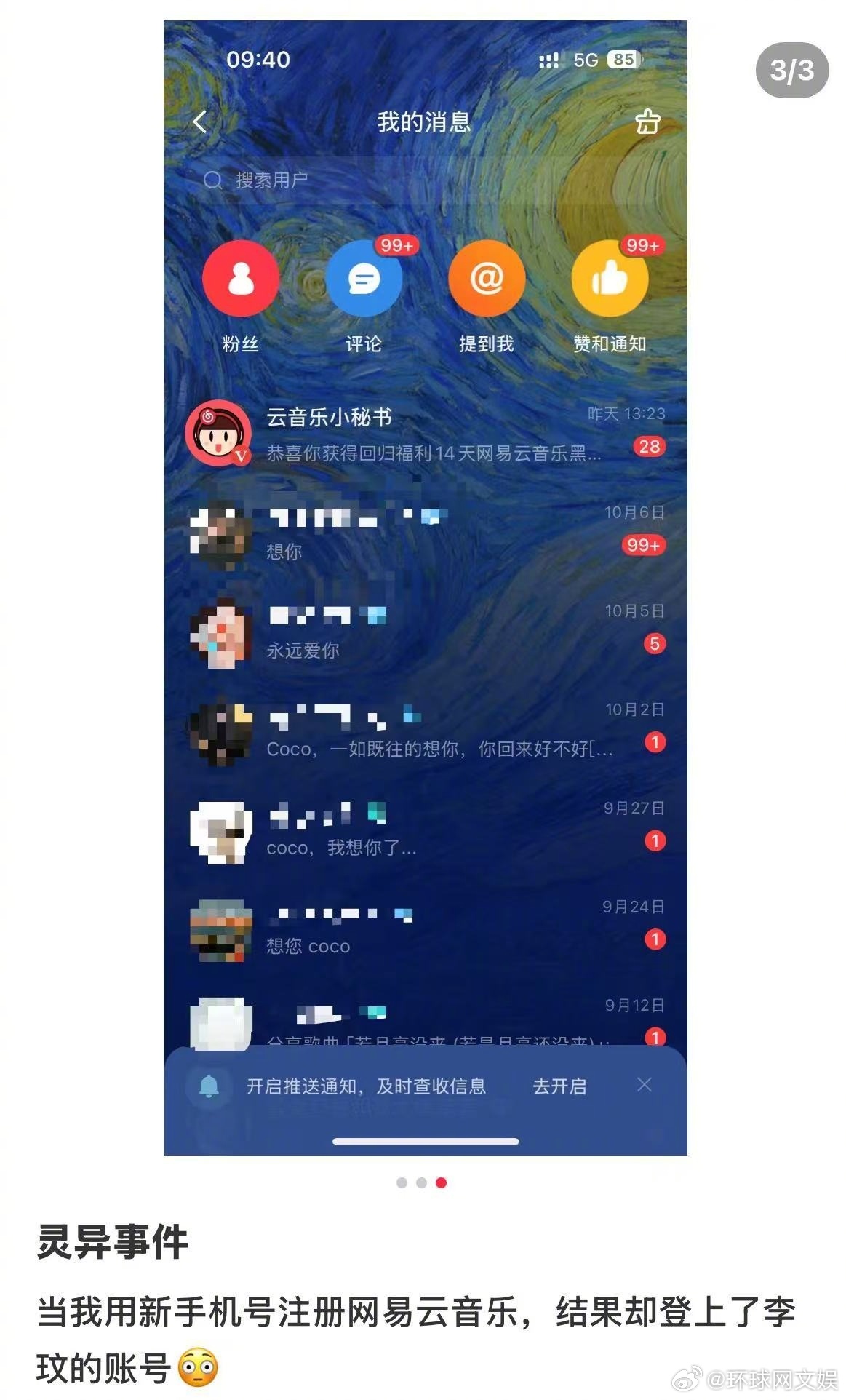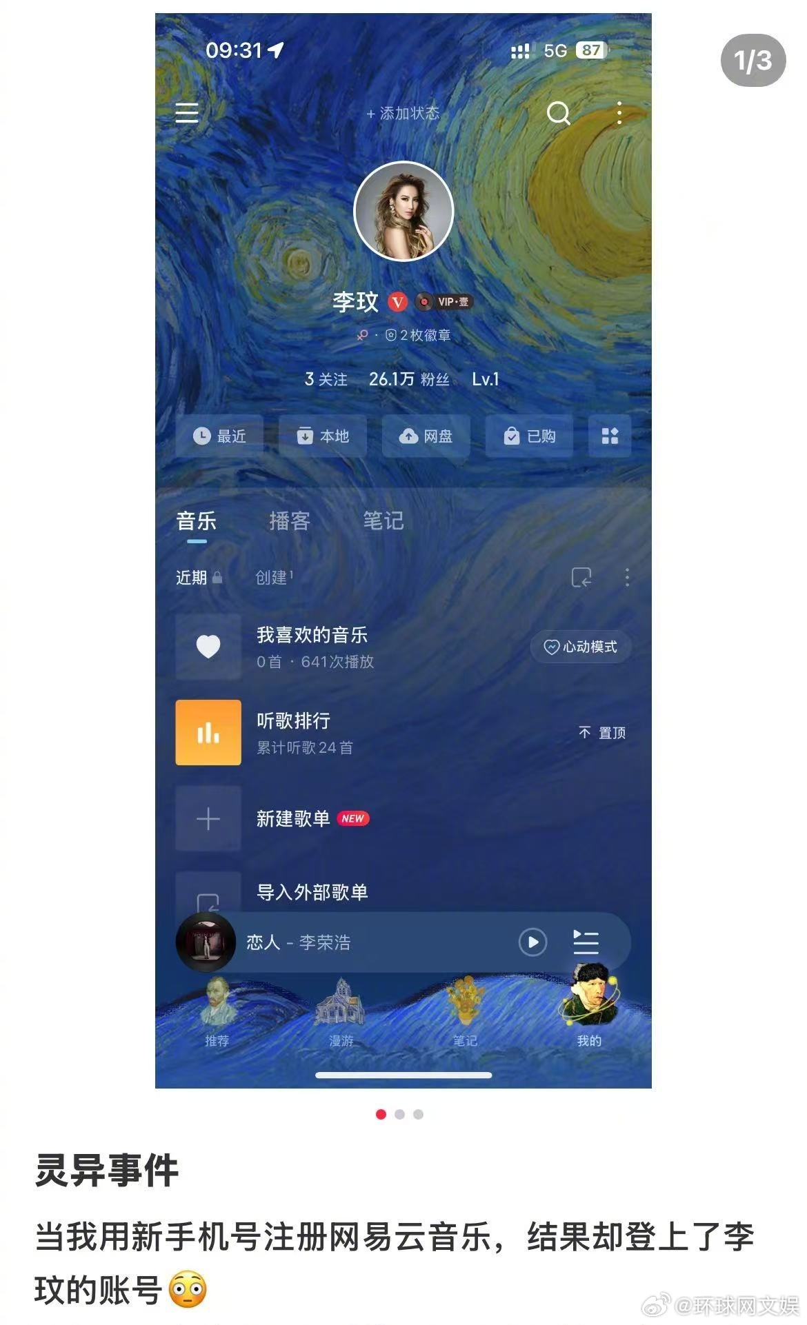 【#官方回应网友意外继承李玟网易云账号# 】10月11日,有网友发帖称,使用新手机号注册网易云音乐时,通过短信验证码登录了已故歌手的音乐账号,引发广泛讨论。#新手机号注册网易云登到李玟账号#