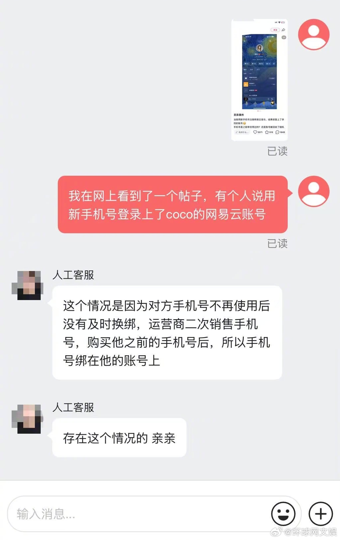 对此,有媒体咨询网易云音乐人工客服,对方表示,存在此类情况。原因为原账号用户在手机号停用后未及时解绑,该号码经运营商回收并二次销售后,被新用户获得,就会出现账号的“继承”。之后,发帖网友称“网易云音乐官方已经来电告知解绑了”。