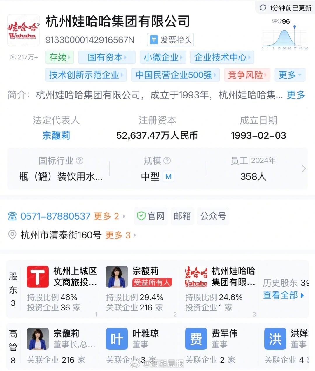 值得注意的是,目前,宗馥莉仍为娃哈哈集团第二大股东。