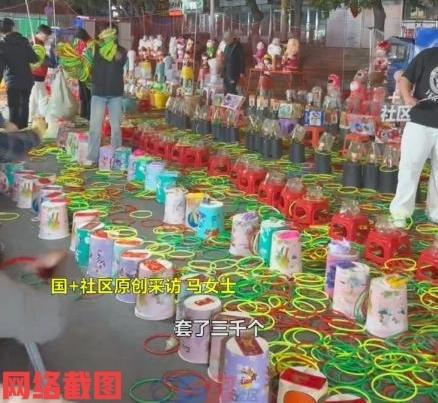 黑龙江齐齐哈尔有女子过来旅游。 在女子逛夜市时,女子看到有套圈的地方觉得好玩,问了老板如何来玩,老板也是大气,三十块钱可以有一千五百个套圈,女子一听觉得便宜,于是买了三千个套圈让自己过把瘾。 现场女子开心玩乐起来,在女子心里想如此之多的套圈,乱扔也能套来几个玩件,这手里密密麻麻的套圈也没有必要太认真,于是女子刚开始还故意做出瞄准的姿态结果一个没中,后来干脆随手扔,看到套圈纷纷落定还是一样物件没有套着,此刻女子与周边围观的人也傻眼了。 最终女子被扔的手臂发酸还是一无所有,无奈准备离开,摊位老板看到女子如此这样,在她临走时塞给她四个小礼品,这算是给她的一点安慰。 有人说,一把套圈都没中一个,这里有技术难度,有人说,这里本来就是图个乐,几千个套圈个个都中,老板要亏死。 这里的套圈玩得是高兴与乐趣,不要在意物件而是在于这一过程,女子享受这一过程,老板也没有让她带着遗憾走,还是给了小礼物算是有个收获。