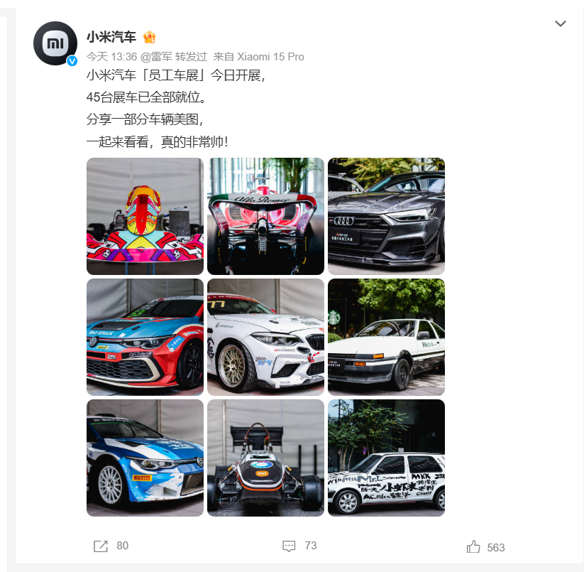 看似是员工汽车文化交流,其实也算是小米对外造势,强调小米“懂车,爱车,才能造好车”。