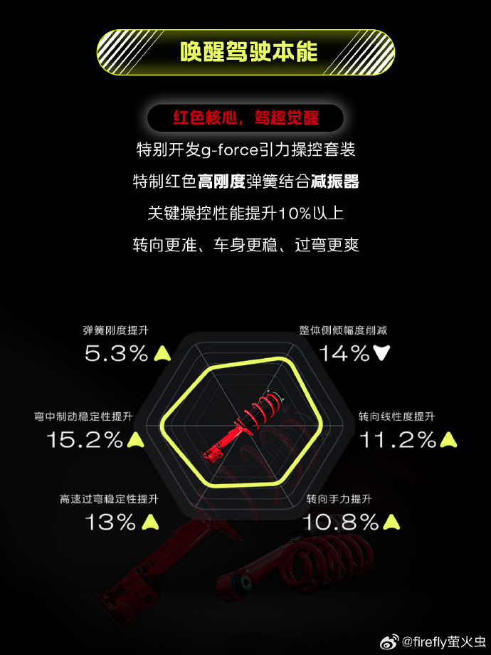 有专属车色、拉花、轮圈,还加了g-force引力操控套装,操控性能有提升。