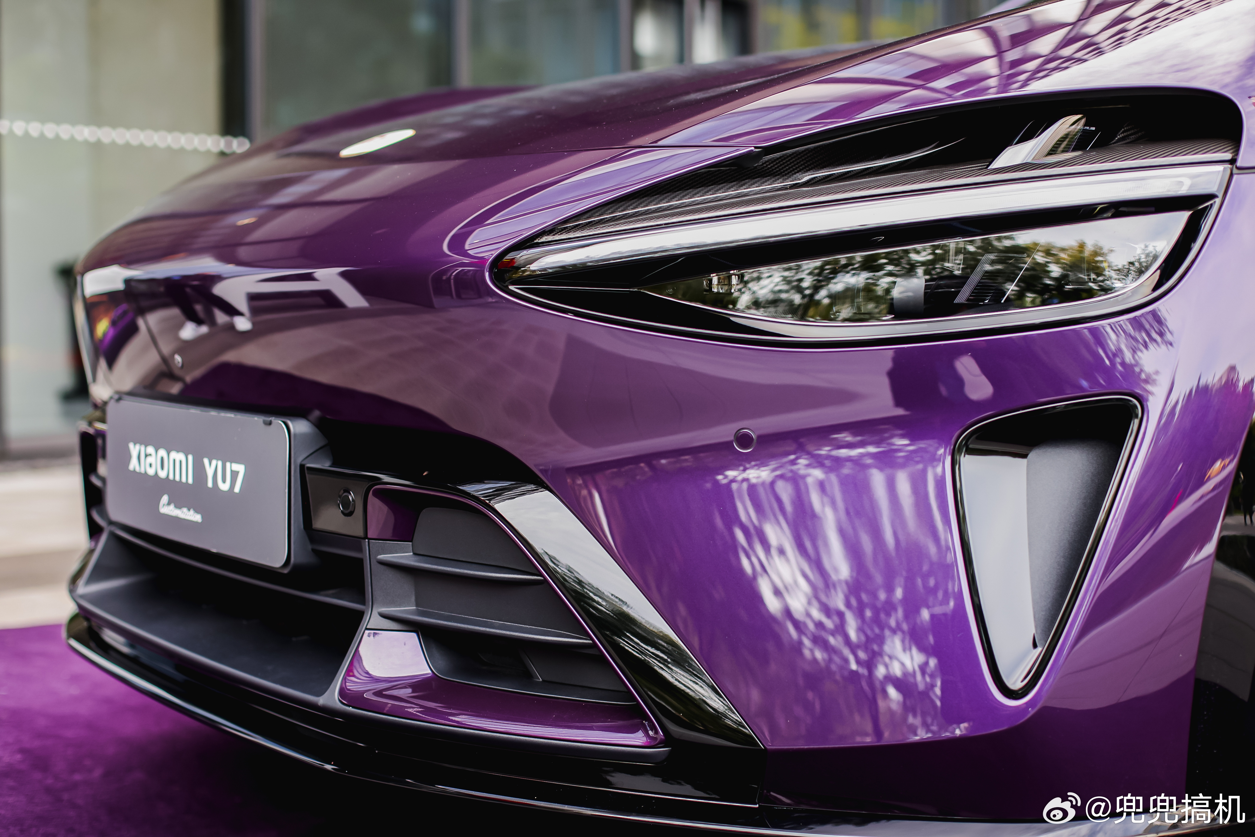 不得不说YU7紫水晶实车惊艳,独特车漆镜面般光滑,这50小时手工打磨能看得出来用心了。Alcantara内饰、精致刺绣与电铸镍铭牌,细节感满满。