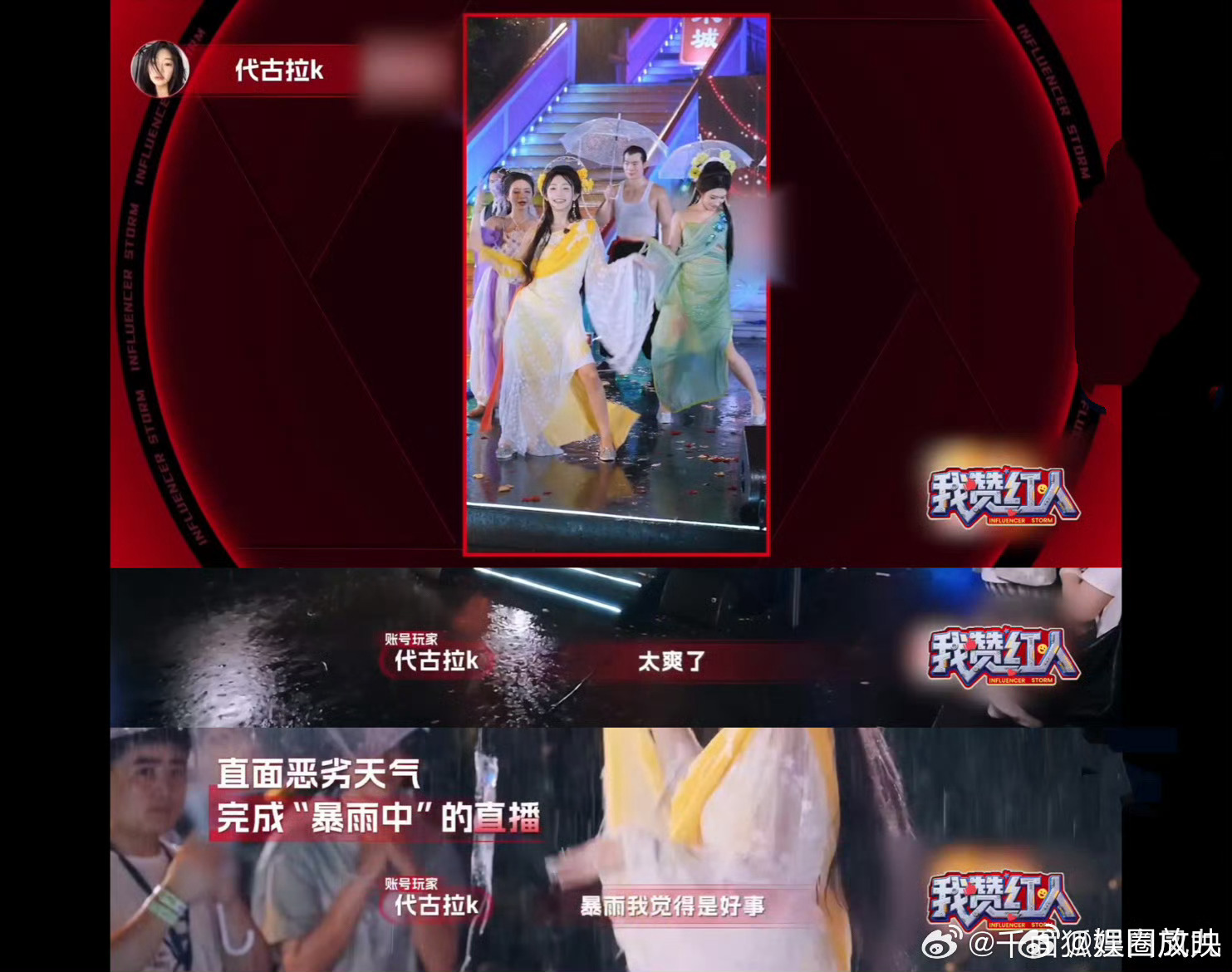 竞综玩出新高度!主播暴雨中坚持battle,代古拉k湿身直播,毒角SHOW硬刚大雨,场面太燃了