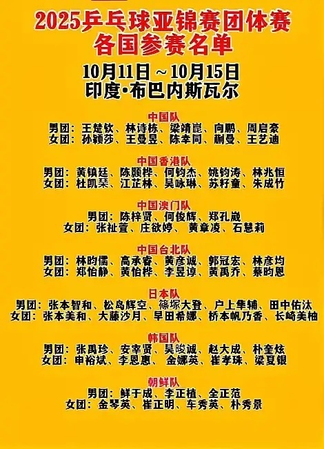 今年亚锦赛各协会都派绝对主力出战,国乒也派出最强阵容,这场洲际大战一触即发!女团去年获亚军,今年目标直指冠军;男团去年登顶,今年欲三连冠,压力都不小。要不咋说马琳聪明呢,去年带队输日本丢冠,颁奖躲着不露面,今年干脆不去了,压力全甩给随队三位教练。这比赛虽积分仅500,但关乎升国旗和世乒赛资格,必全力以赴!