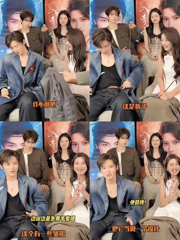说着还站起来扯了扯裤子,可惜没什么变化,场面还挺逗。最有意思的是工作人员还补了句“每道褶皱都是来时路”,硬生生把小尴尬聊出了梗。