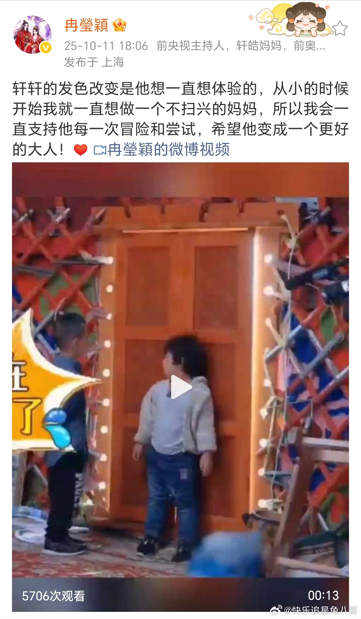 冉莹颖回应大儿子染发冉莹颖回应大儿子橙发 冉莹颖回应大儿子染发,这个发色还蛮适合他的