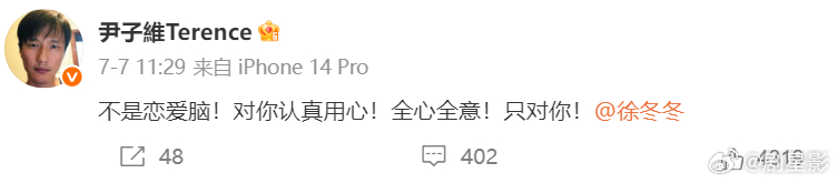 尹子维凌晨5点还在表白徐冬冬 吃到了一波又一波的糖分了呀,看到了尹子维凌晨5点还在表白徐冬冬,真夫妻之间的感情真的很好啊,希望两个人天长地久。
