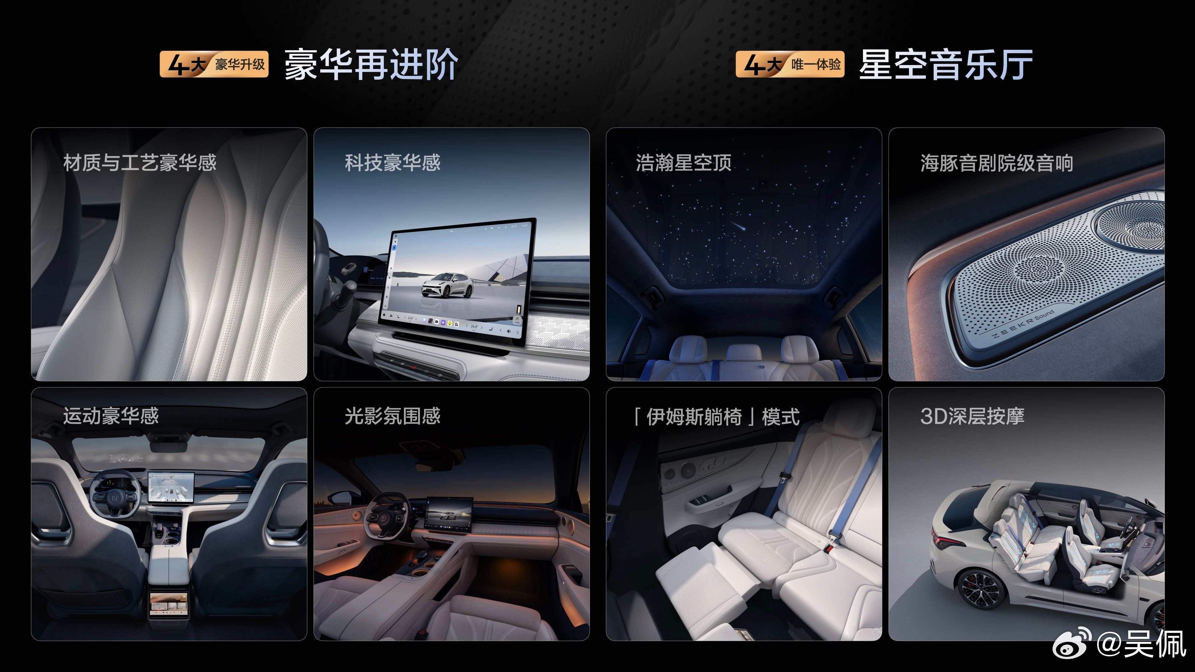 全栈900V平台开发、95度版本配12C神盾金砖电池、标配千里浩瀚H7辅助驾驶(英伟达Thor芯片,总算力700TOPS)、更智能的ZEEKR AI OS7智舱,还有星空顶……