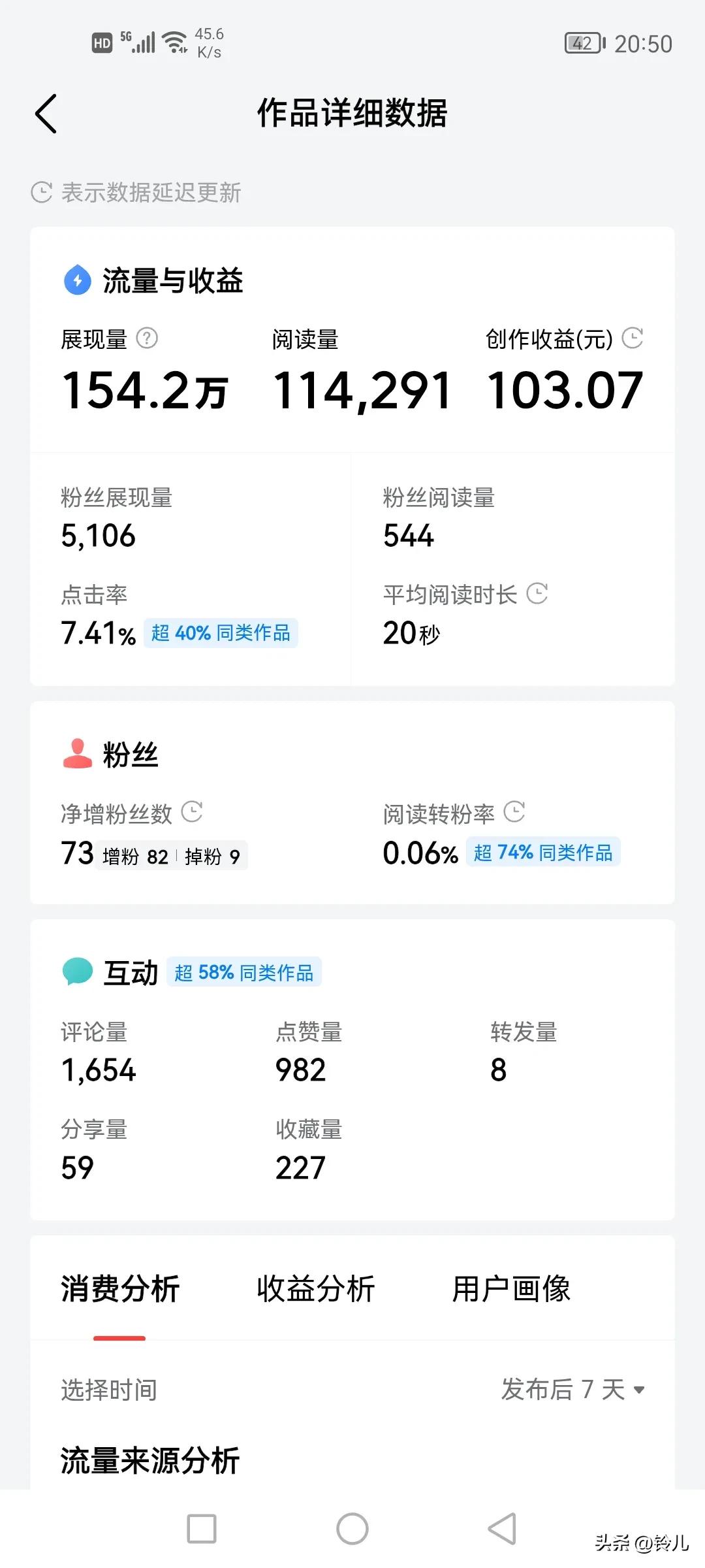 我告诉你三个秘密 有人说我头条风生水起 我关注好友先看获赞率 获赞高说明他比较活跃 不知不觉我拥有三万多粉丝 获赞破10万喽 我还发现一个秘密 发文后先找一个人暖场的 我给别人暖过场果然有流量 找不到人自己暖暖场 别冷了自己的场 我还发现一个秘密 我发现最近以四十岁后 五十岁后六十岁后开头比较火 其实内容几十岁都适用 总结归纳都是活通透 别在蒙眼瞎拉磨 头条新规改了之后 我就写了一篇优质文 单篇收益达到三位数 我没有大咖的潜质 但我比大咖活跃度高