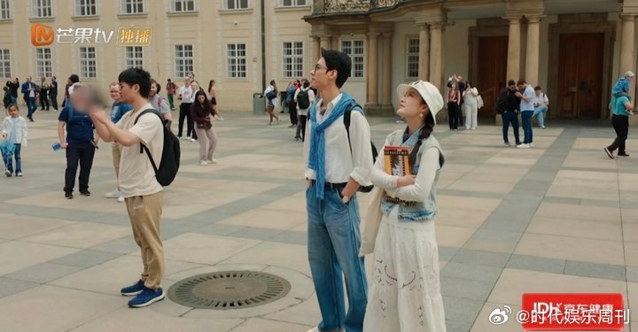 张天爱跟素人合影,胯真的好宽,大宅院似的