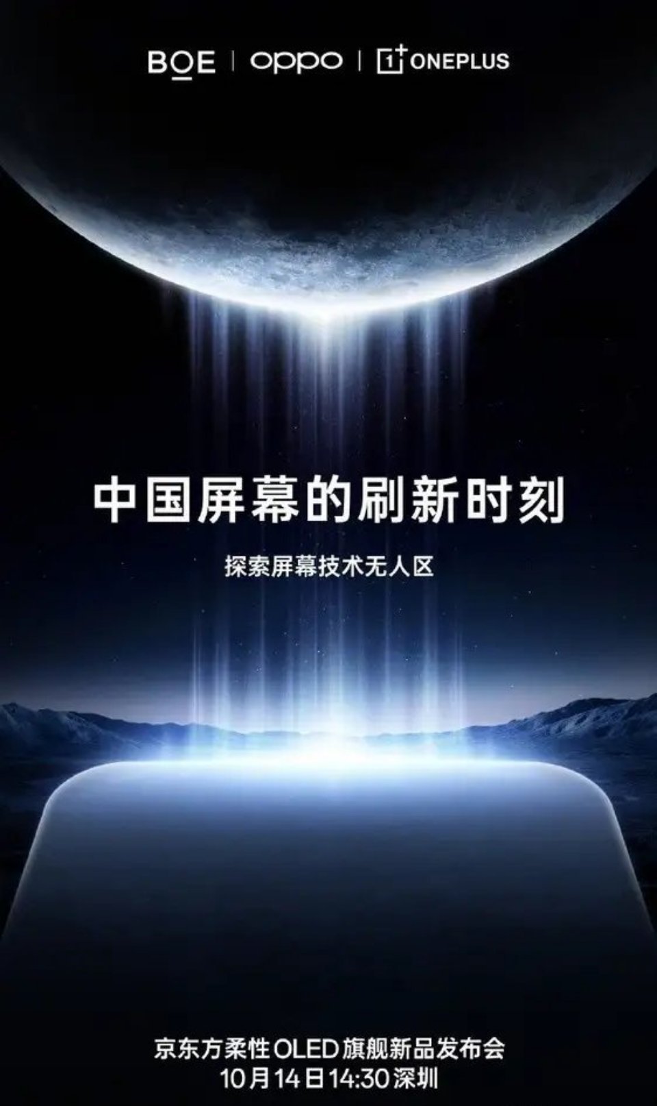 一加中国区总裁李杰发文称,一加与京东方再次联合打造的全球最先进的一块屏幕——“第三代东方屏”,将于10月14日正式发布。李杰表示,第三代东方屏将再次引领行业,率先进入全新的“165Hz超高刷时代”,这将是一加过去十年在手机体验方面最重要的提升。