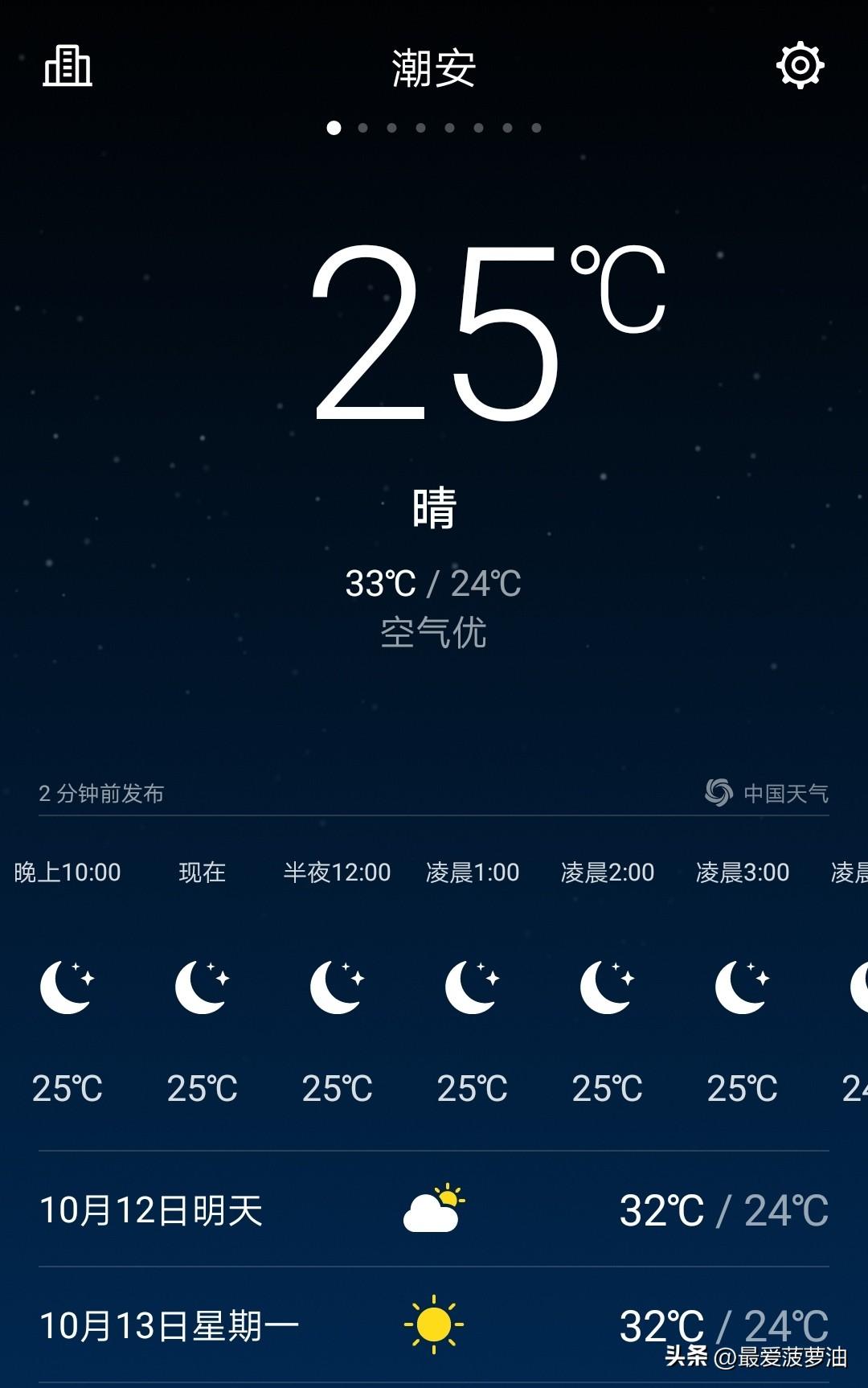 好消息!好消息! 南方高温下周或终结! 今秋气温为何突然乱套了? 南方多地热到破纪录, 气候越来越反常 当北方不再“北方”! 广东 气晴热为主雷雨冒泡! 11~14日, 广东南部、珠三角洲西部等地有雨, 局部伴有强对流天气, 请注意防御局地短时强降水、雷雨大风等强对流天气。 今天(11日), 潮州喜提一个晴转多云天气! 气温24~33℃, 此刻气温25℃。 近来广东天气热力持久, 久到离谱! 全省最高气温天天都是35℃+, 热到停不下来! 严重怀疑广东的太阳偷偷嚼了炫迈口香糖! 我是不嚼炫迈口香糖的, 开着空调, 连接WIFI, 吃点新鲜的橙子吧! [捂脸][捂脸][捂脸][捂脸][捂脸][捂脸][捂脸][捂脸] 晒图笔记大赛