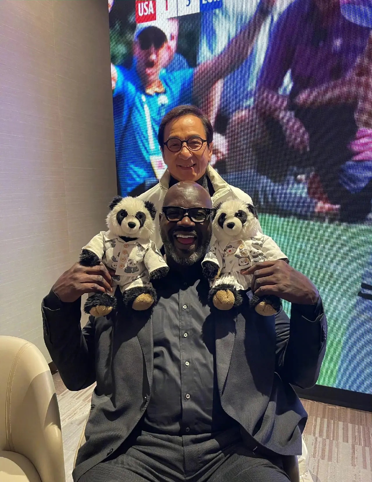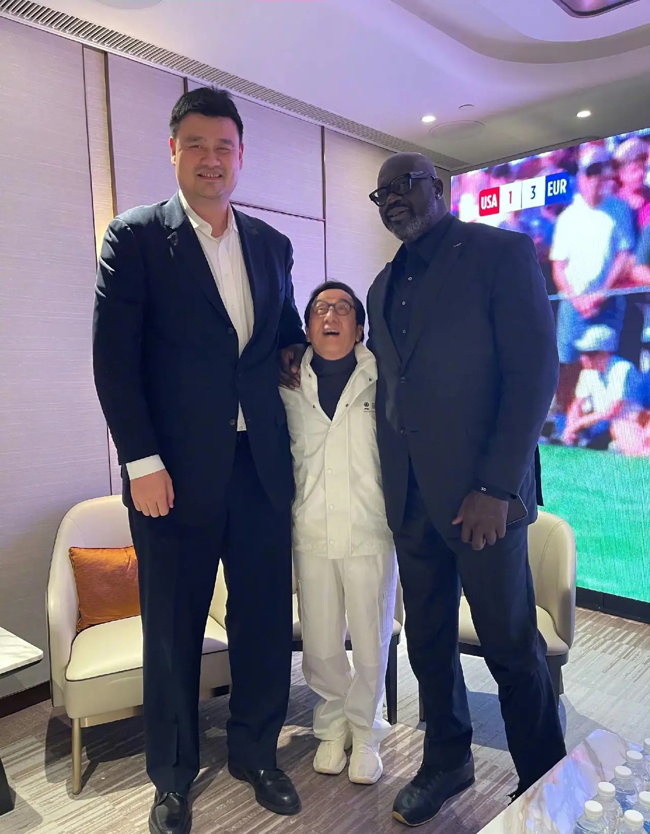 特别是这两人都是深色衣服,成龙一身白色,抬头看两人,大哥变小弟。