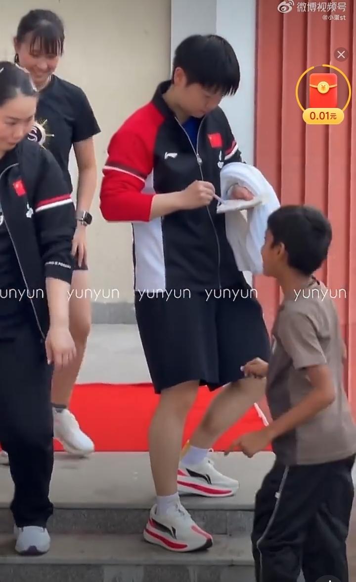 印度亚锦赛第一天结束训练的莎莎[赞][笑哭]! 和陪练何卓佳一起结束训练的孙颖莎在返回途中又被球迷拦住签名、合照了。 莎莎没有一点儿架子,给小男孩签了名,转头又被两个女孩子叫住合影了,莎莎没有拒绝。 还好,国乒男团、女团都不需要参加正在进行中的第一阶段小组赛,第二阶段比赛还没有开始,莎莎还不算太累。 但愿孩子们吃好休息好,打好比赛!