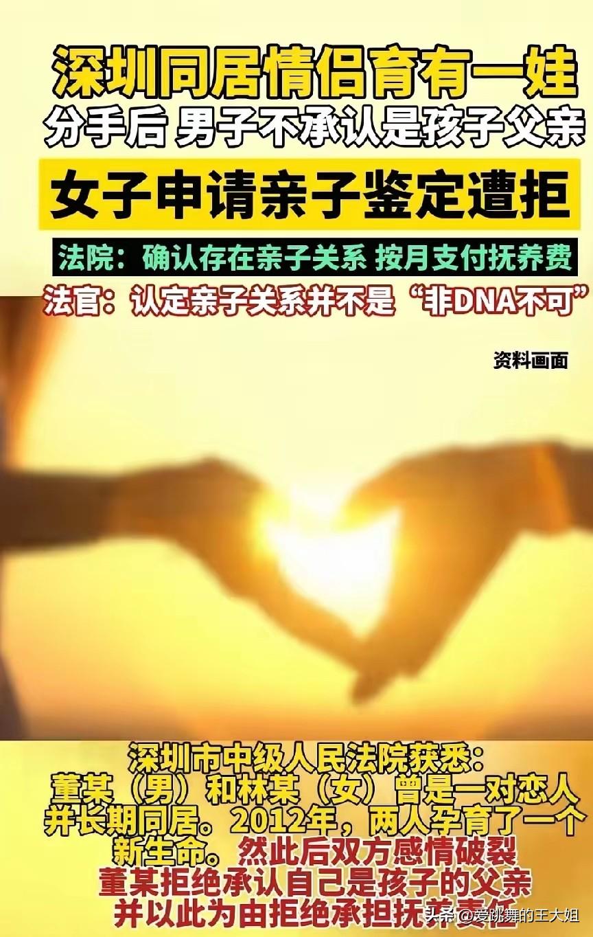 广东深圳,男子和女友长期同居并生育了一个孩子,没想到,孩子的到来不仅没有促进感情,反而让双方感情产生裂痕,闹到分手的地步。男子拒绝承认是孩子 的生父,也不配合做亲子鉴定,更是拒绝支付抚养费。女友一气之下告上法庭,法院的判决让男子意向不到。 法庭上,这对曾经的恋人展开了激烈交锋。女方拿出了孩子的出生医学证明,上面清清楚楚写着男子就是孩子的父亲。她向法官诉说这些年独自抚养孩子的艰辛,孩子的奶粉、尿布、早教班,哪一样不要钱?她多次找男子商量抚养费的事,对方总是甩出一句“谁知道这是不是我的孩子”。 男子在法庭上矢口否认。他声称自己和女方只是普通朋友,出生证上的信息是女方当年办手续时找他“帮个忙”而已。法官建议做亲子鉴定以查明真相,男子坚决不同意,说这会影响他现在的家庭生活。他名下明明有多处房产和商铺,却辩称自己“没有经济能力”支付抚养费。 法官没有被这些说辞迷惑。审判长明确指出,女方已经提供了出生证明等初步证据,这种情况下男方如果坚持否认亲子关系,要么配合做亲子鉴定,要么拿出相反证据。男方既不肯做鉴定又拿不出像样证据,法律上就要承担不利后果。法院最终依据《民法典》规定,推定男子就是孩子的生物学父亲。 判决结果出乎男子意料——他不仅被确认为孩子生父,还需要按月支付抚养费直到孩子成年。考虑到男子拥有二十多处房产商铺,具备强支付能力,法院还支持了女方要求一次性支付抚养费的请求,判决男子一次性支付四十余万元,彻底解决这场持续多年的纠纷。 类似情况在全国各地法院都有发生。广西柳州有个案子几乎如出一辙,男子以同样理由拒付抚养费十三年,最终法院判决他一次性支付四十多万元。更极端的是广州从化一名男子,竟然在三次亲子鉴定结果都确认亲子关系后,仍怀疑鉴定被“做了手脚”,继续拒绝支付抚养费。 法律对非婚生子女的保护非常明确——他们与婚生子女享有完全同等权利。不直接抚养孩子的一方必须承担抚养费,这是法定义务,任何理由都不能推脱。就算父母之间有过协议,如果协议约定的抚养费数额明显过高甚至可能侵犯他人权益(如男方配偶的夫妻共同财产权),法院也会依法调整。 那些试图通过拒绝亲子鉴定来逃避责任的人,最终都付出了更大代价。法律的推定规则让逃避者无处可逃,血缘可以质疑,责任无法推卸。每个孩子都有权利获得父母的关爱与抚养,成人之间的感情纠葛不该由无辜的孩子来承担后果。 各位读者你们怎么看?欢迎在评论区讨论。