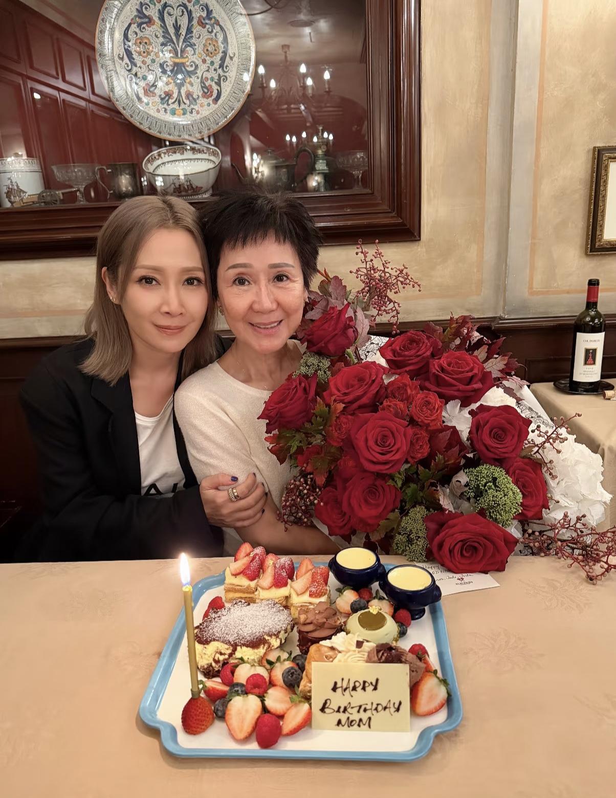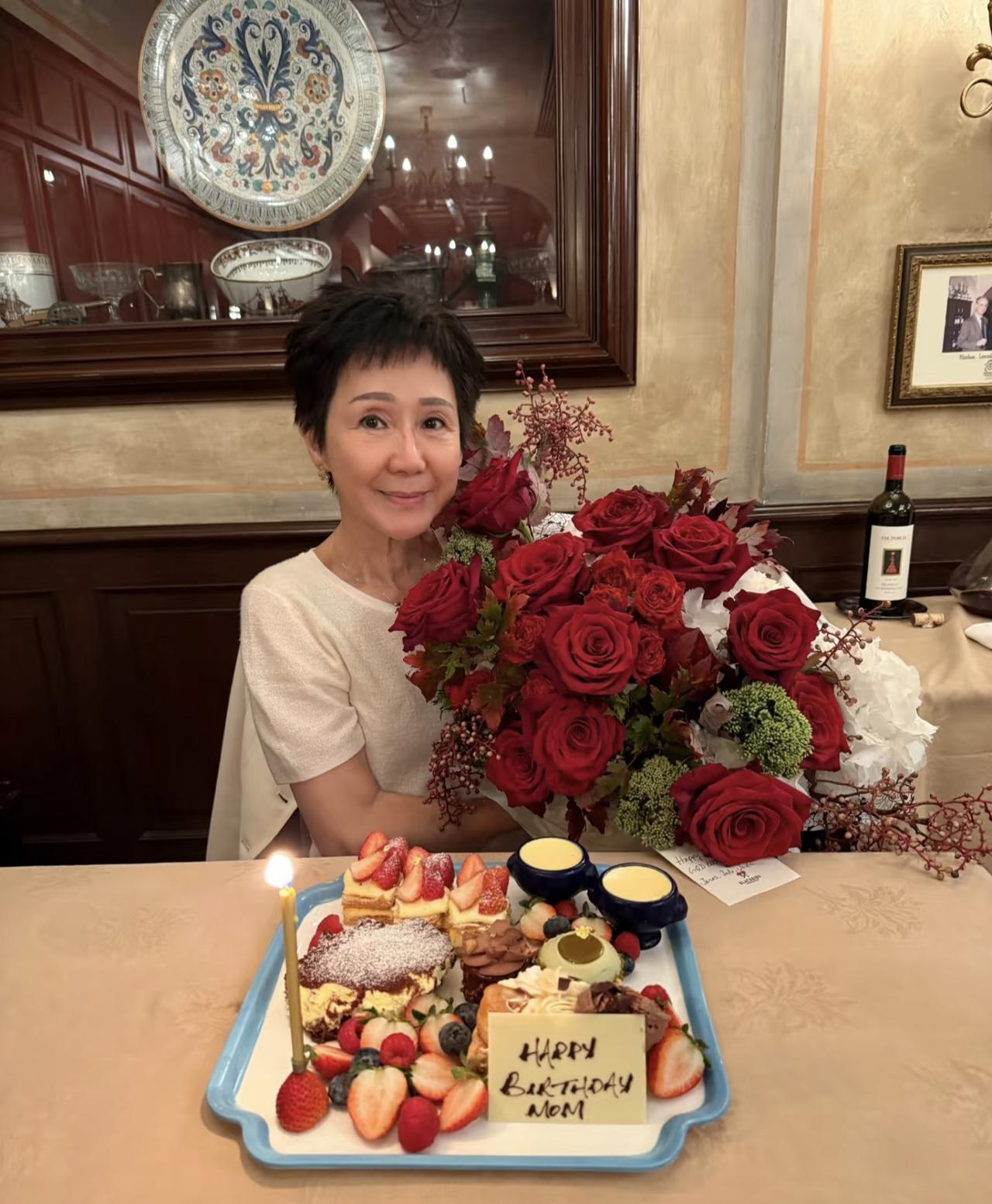 46岁关心妍和老公一起为妈妈庆祝生日,她的妈妈看起来好年轻,母女俩长得非常像,妈