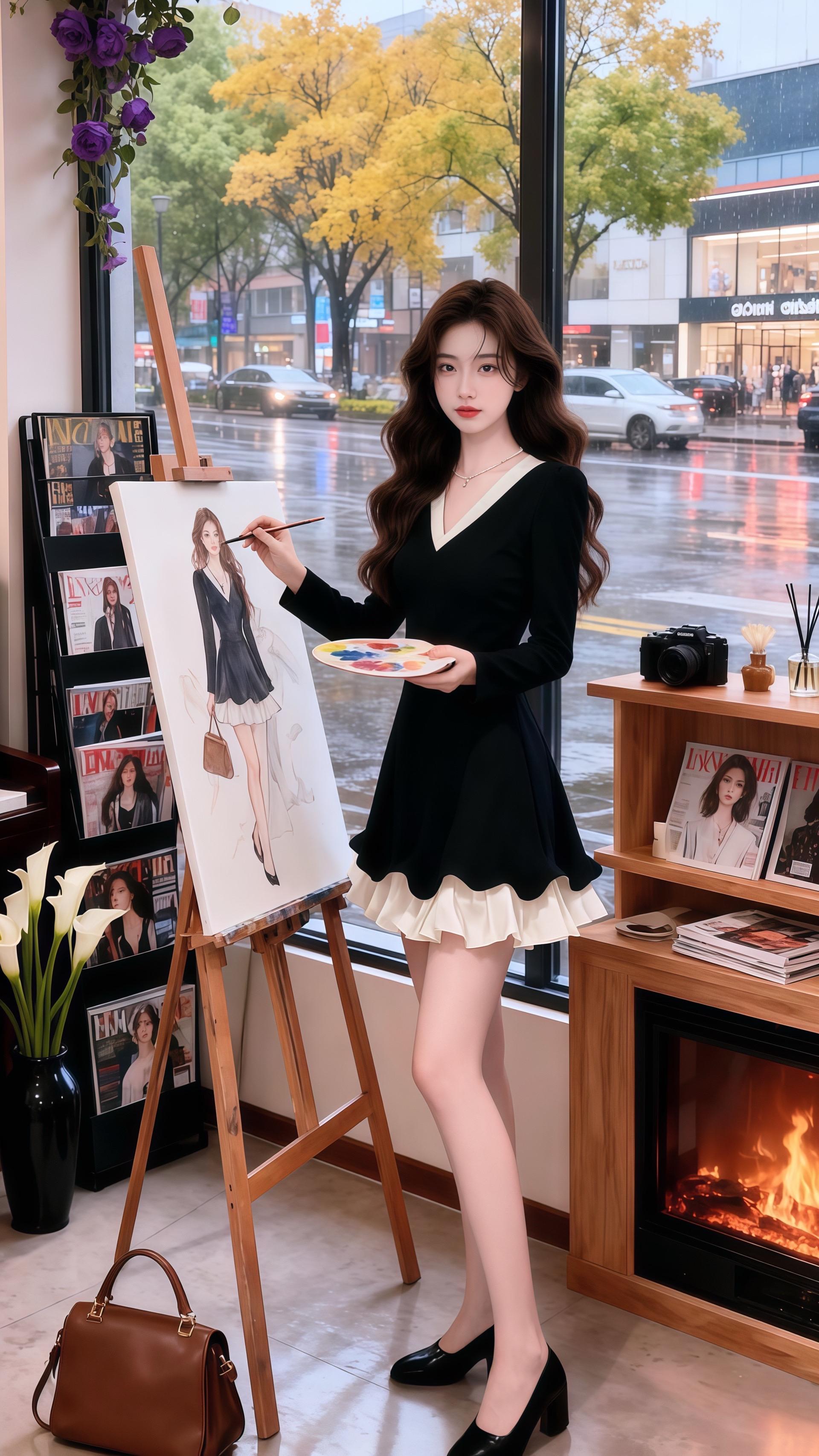 转身,她成了时尚插画师。画架前,她以画笔为针,将脑海里的穿搭灵感铺成画纸,颜料在调色盘里晕染,如同她对时尚的热情永不干涸。画中的自己,穿着同款洋装,是她对设计的另一种诠释。