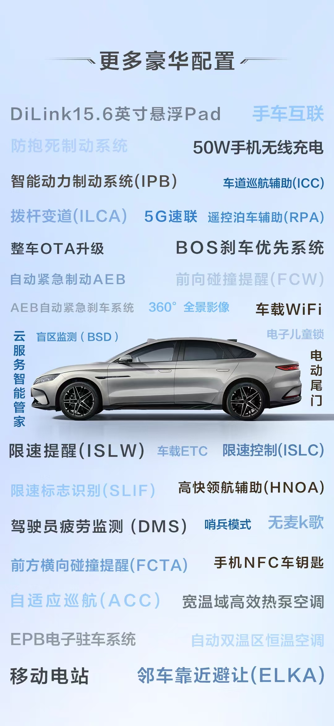搭载DiLink 100智能座舱高阶版,接入Deepseek大模型,新增手车互联、无麦K歌等功能。智能生态深度整合,与好孩子智能儿童安全座椅等联动,为家人出行保驾护航。云辇-C智能阻尼车身控制系统与主动预瞄功能配合,可识别前方15米路况,精准调节悬架阻尼。“天神之眼”辅助驾驶系统支持超300种泊车场景,比亚迪还承诺对泊车安全问题全面兜底。