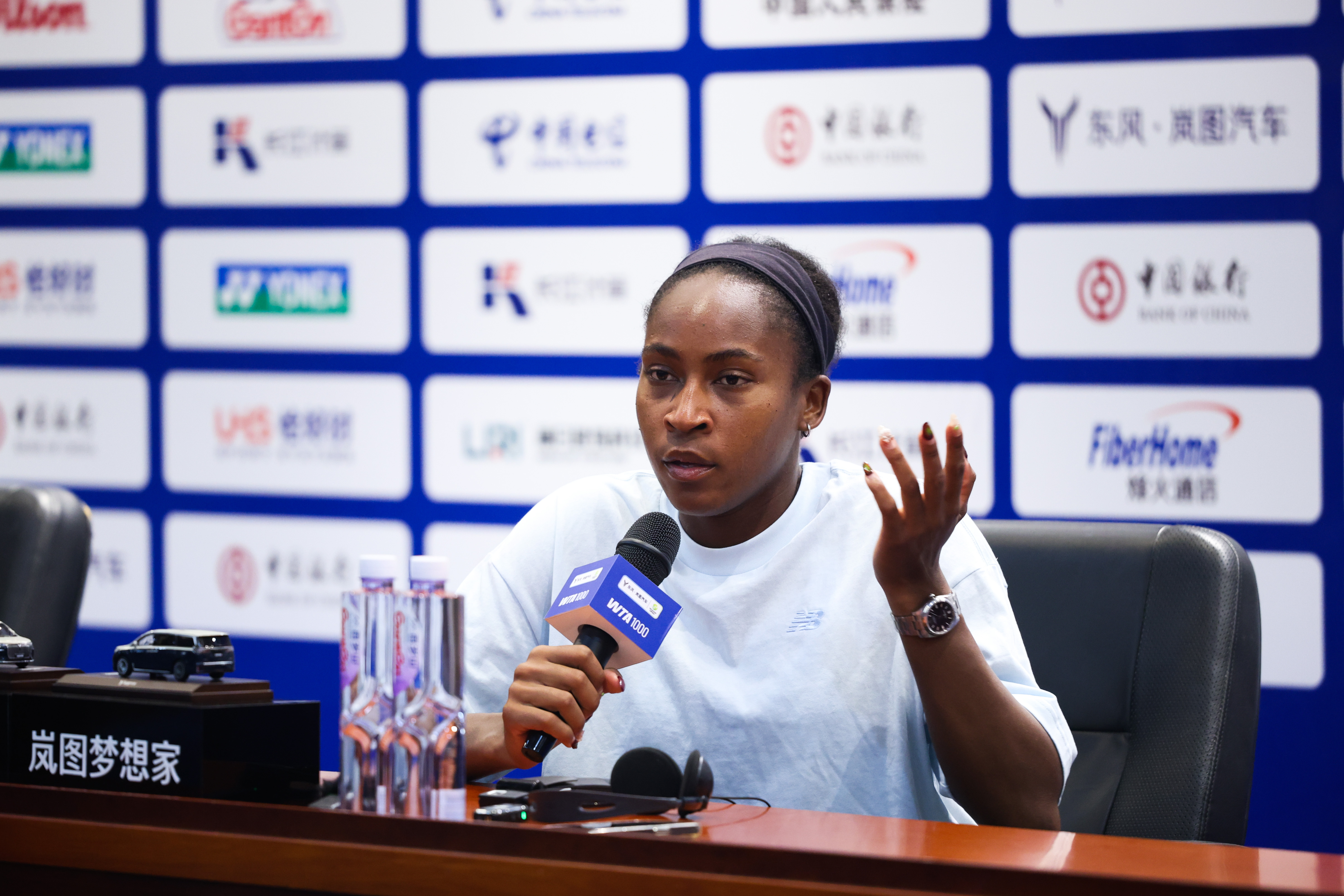我可能需要去做一些数据分析,要去做一些战术安排,我在想如果我想去打一些效果好的球的话我就会去打那些球,更多的守住底线。发球我们都可能存在一些问题,对于我自己来说,她破了我的很多发球局,我也破了很多她的发球局,我努力让我的发球局被破的时不要那么难过,因为Coco打球的时候也会破很多发球局。我们接发都非常好,一旦对方发了很好的球我们也能够接得很好,那个时候我们就需要做一些调整,我需要去调整我的发球,调整我的接发球,最终获得了比赛的胜利。