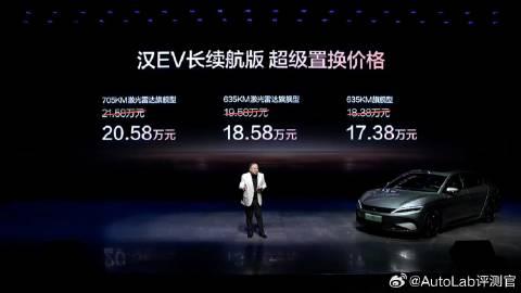 在比亚迪汉家族销量破百万后,今天比亚迪给汉又来了波升级 其中,汉DM-i 245KM长续航版置换补贴后售价15.98万-18.98万元;汉 EV长续航版超级置换补贴后售价15.98万-20.58万元 新车的升级主要有四个 首先是新车标配“天神之眼”辅助驾驶,支持高速/城市NOA、自动泊车等功能,并且官方还承诺智能泊车出现损失全兜底 舒适配置上,新车还新增了防晕车模式、车载冰箱,并且还把换挡做成了怀档 主动安全方面,新车把AEB自动紧急制动做成了标配,可实现120km/h内对静态前车刹停 最后是外观,新款车型新增了雾凇金、松影绿和远峰蓝三款配色【来自懂车帝车友圈】