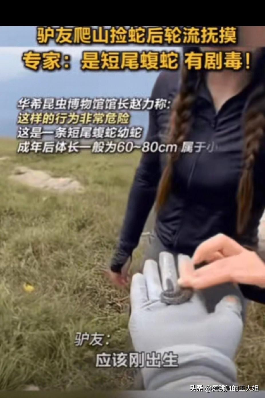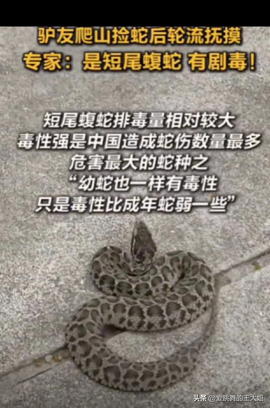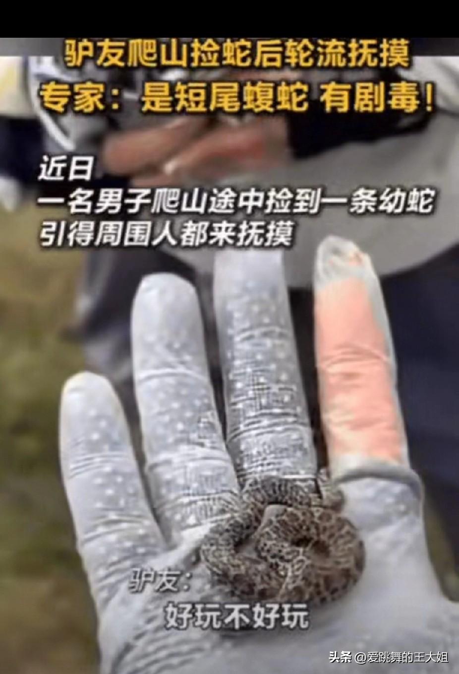 胆子真大!”男子和朋友爬山,捡到一条小蛇,觉得挺可爱的,几人轮流抚摸,还将这一幕发到网上炫耀,结果却专家一眼识破:这是短尾蝮蛇,有剧毒,严重可致截肢、器官衰竭甚至死亡! 视频里那条被传来传去的小蛇,看起来确实不怎么起眼,灰褐色的身子,还没一根筷子长。它脑袋微微呈三角形,眼睛后面好像画了条黑色的“眼线”。捧着他的男子还挺得意,招呼同伴们都来摸摸这个“可爱”的小玩意儿。他们大概完全没意识到,这条看似温顺的小蛇,竟然是中国造成蛇伤数量最多的毒蛇之一——短尾蝮。 这种蛇的栖息地和人类活动范围重叠度很高,平原、丘陵、甚至耕作区和村落周围都能发现它们的踪迹。它们天生穿着“隐身衣”,灰褐的体色和背部交错的深色圆斑,让它们在草丛、落叶堆里极难被察觉。短尾蝮的性情不算特别暴躁,但一旦感觉受到威胁,比如被人拿在手里把玩,它们会毫不犹豫地发动攻击。它的毒液是混合毒,主要以血循毒为主,咬伤后伤口会剧烈疼痛、红肿,可能出现休克、呼吸麻痹,甚至急性肾功能衰竭。别看这只是条幼蛇,毒性可能比成蛇弱些,但其排毒量依然不容小觑,足以对人造成严重伤害。 这件事暴露了不少人在野外活动时普遍存在的侥幸心理和知识盲区。总觉得“小”就等于“无害”,看着“乖”就敢伸手。这种以貌取“蛇”的想法非常危险。在野外,永远不要徒手触碰、捕捉或惊扰任何你不认识的动物,哪怕它看起来再人畜无害。蛇类通常不会主动攻击人,大多数咬伤事故都发生在人们无意中踩到蛇,或者像视频中这样主动挑衅的时候。 万一在野外遇到蛇,最正确的做法是“互不干涉”。保持冷静,不要突然移动或主动攻击,给蛇让出离开的通道,然后缓慢后退,保持安全距离绕行。如果蛇出现在家里或人员密集的地方,千万别自己动手,应该立即拨打110或119联系专业人员来处理。 不幸被蛇咬伤,时间就变得异常宝贵。黄金救治期通常只有2到4小时。这时候要保持镇定,让伤者静止不动,避免加速血液循环。用清水冲洗伤口,并在伤口近心端进行松紧适度的绑扎。最关键的一点是,尽量记住蛇的外形特征,或者用手机拍下照片,然后以最快的速度送到有抗蛇毒血清的医院。上海等地已有多家医院备有血清,为救治提供了重要保障。 亲近自然是好事,但这份亲近必须建立在尊重和了解之上。每一个看似“好玩”的冲动背后,可能都隐藏着未知的风险。对野生动物保持一份必要的敬畏,既是保护它们,更是保护我们自己。 各位读者你们怎么看?欢迎在评论区讨论。