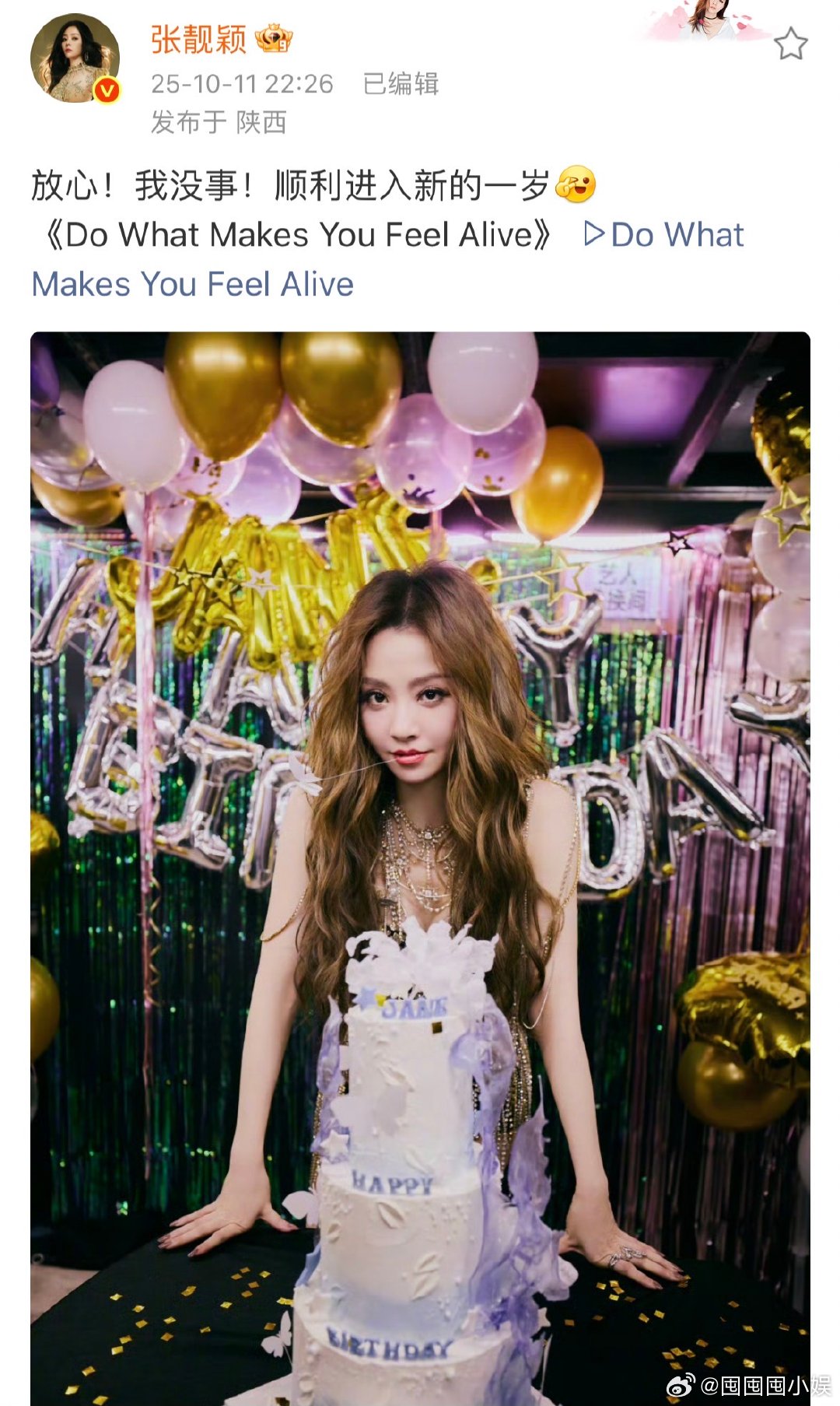 张靓颖41岁生日照张靓颖称顺利进入新的一岁张靓颖摔下舞台后报平安,称顺利进入新的