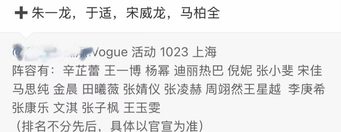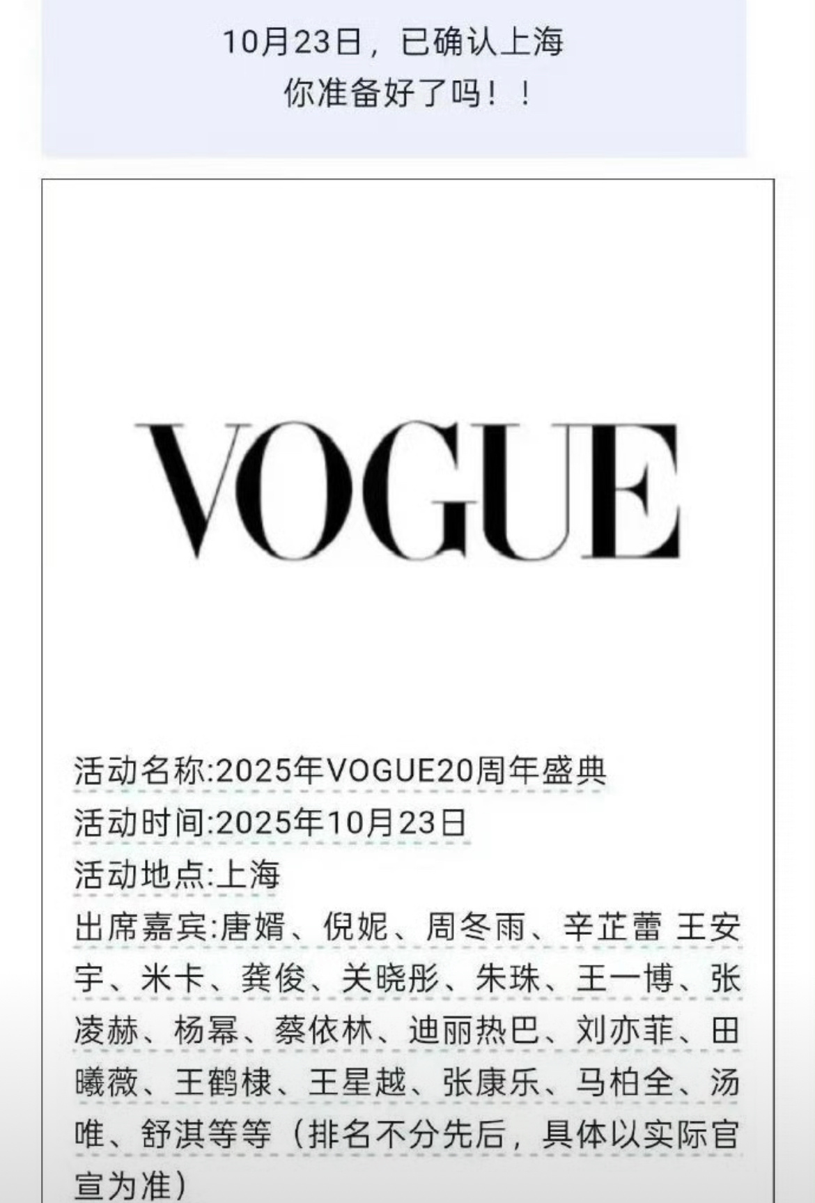🍉VOGUE20周年盛典活动阵容,这次刘冲真的发力了。有想看的吗?