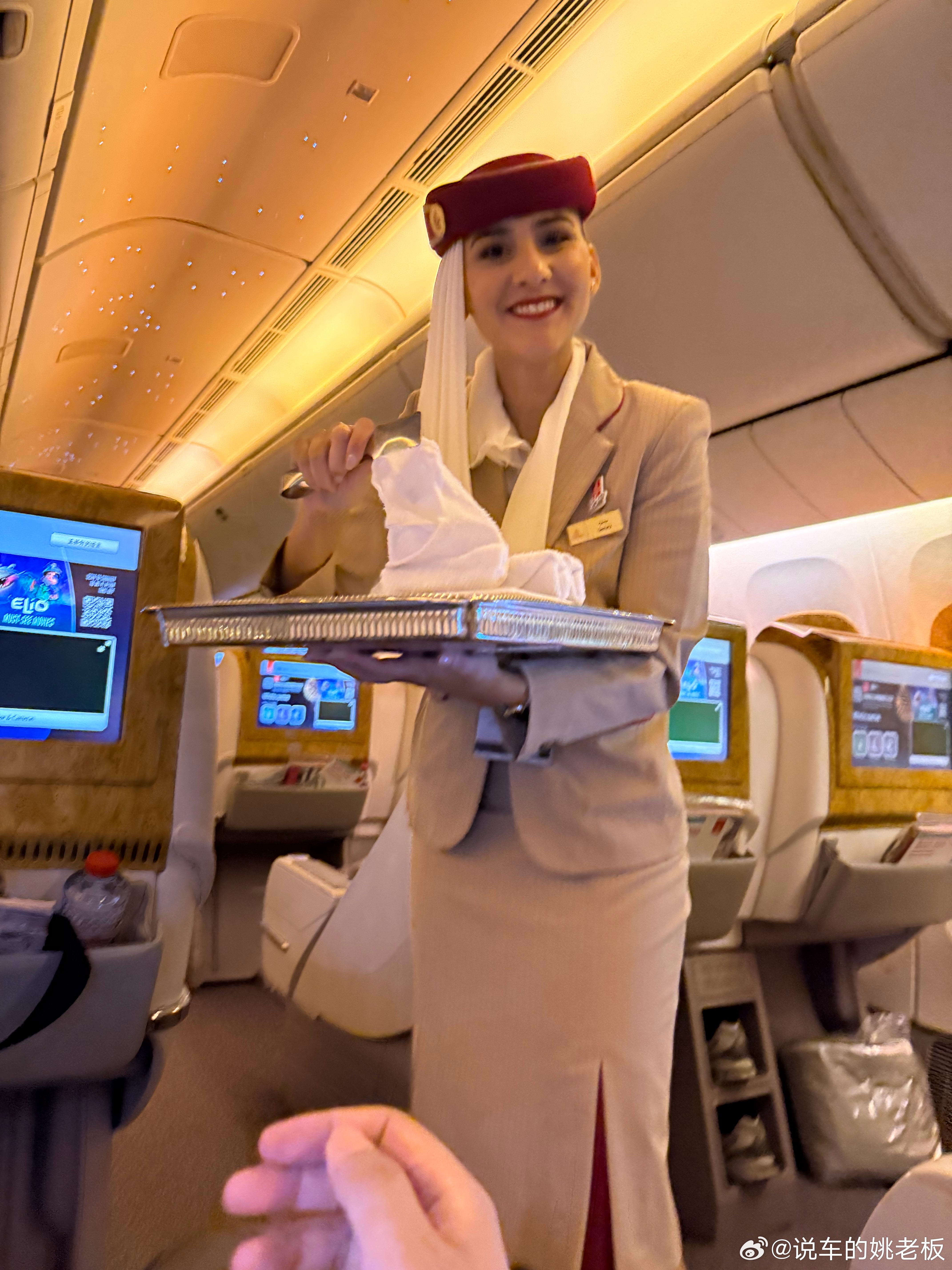 起飞了家人们 飞8个小时 咱们迪拜见喽[笑而不语]跟姚老板混一天吃9顿[超话]