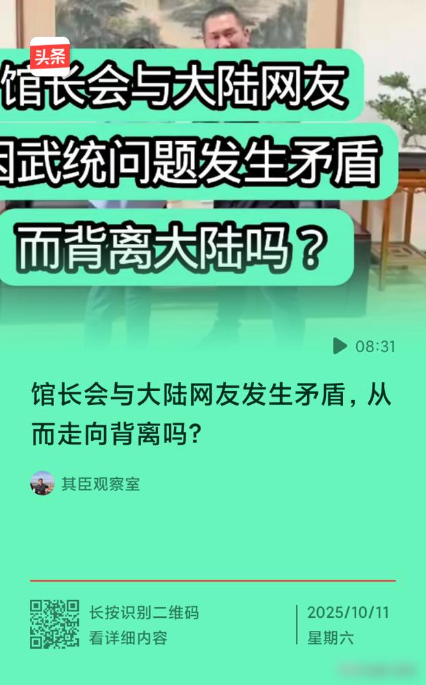 馆长的直播最近确实挺多人看。从上海回来那阵子,他说话还挺直接,承认自己是中国人,讲两岸同根同源。感觉这人一开始挺实在。但看着看着就变味了,直播里脏话越来越多,骂完大陆又得罪民进党,生意不好做了,转头又想靠大陆市场赚钱。这种反复确实让人有点看不懂。 说他只是网红,可能还抬举了。一会儿说要当两岸桥梁,一会儿在直播间怼网友,说武统不把台湾人当人。可问题根本不是老百姓,是那些搞“台独”的人非要往绝路上走。现在他自己惹了麻烦,说要把赖清德怎样怎样,台湾警方要查他,立刻改口说是大陆网友说的。这操作也太快了,明显是怕事。 台湾那边民意分布,维持现状的占多数,真想“独立”的其实没那么多。但有些人就爱炒作数字,搞得好像全民都想怎样似的。馆长嘴上说想当桥梁,行动上却两边讨好又两边得罪,最后里外不是人。真正盼统一的人,谁会把希望寄托在一个网红身上?太不现实了。 说到底,两岸的事不是谁直播喊几句话就能改变的。想靠骂人吸流量,最后只会被流量反噬。现在他甩锅给大陆网友,更显得没担当。网上很多人说他是“两面人”,这话还真没说错。