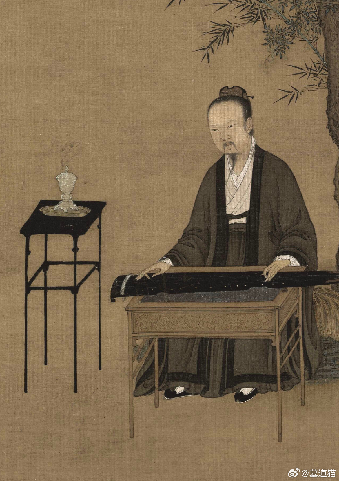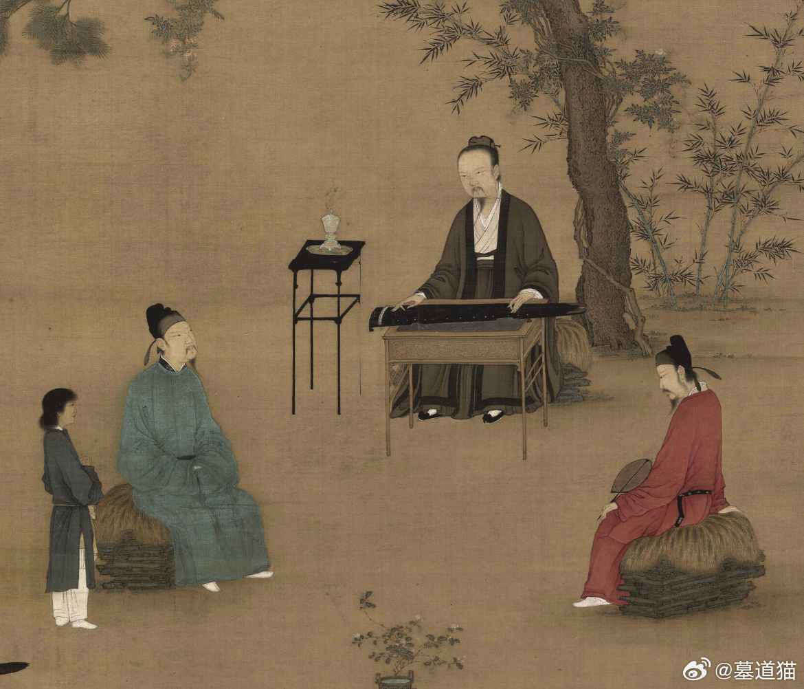 《听琴图》,故宫博物院/藏此幅描绘官僚贵族雅集听琴的场景。主人公道冠玄袍,居中端