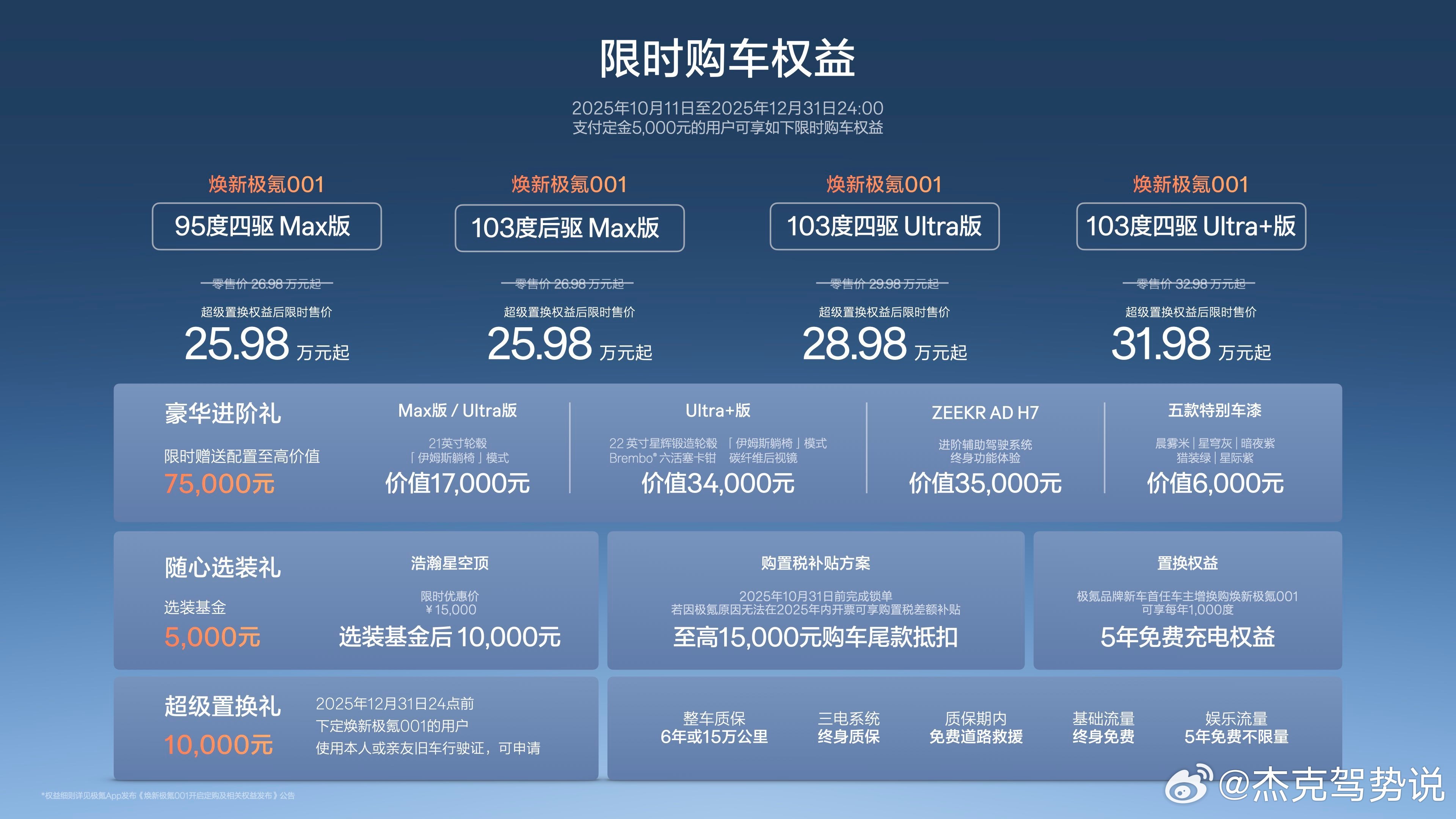 其实背不背刺极氪001老车主不是看你定价多少,毕竟25款极氪001清库的价格也已经背刺了。老车主对新产品的期望主要是一个确定性,新极氪001一步到位定23.98万元,其实给老车主一个二手车市场保值的确定性、一个爆款的确定性。只有新极氪001爆款了,老车主才是有价值的。