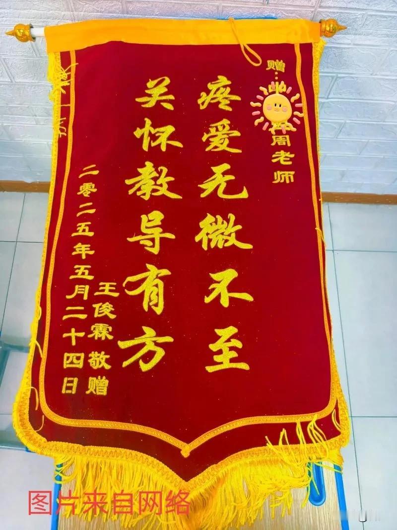 最近我市某小学有的老师莫名其妙,有家长送锦旗。最令老师们尴尬的是也没做什么值得送锦旗的事。 老师教书育人只是他(她)糊口的一份工作而已,不必总想表白心意。对孩子好,教的好是他们份内工作,对工作不负责任造成负面影响会解聘。 老师现在压力大,不是以前的香饽饽,现在一到学校就埋头苦干,备课准备课件,批改作业,电脑里有学习打卡任务,手机里有工作安排任务。下课有看护学生的任务。盯自习,上课后服务。一个个上下楼都是一溜儿小跑。 作为家长尊重老师的工作,不干扰老师工作,就是对老师最暖表白。尊师重教不是一句口号,老师和家长双向奔赴不比一面锦旗更感人么?