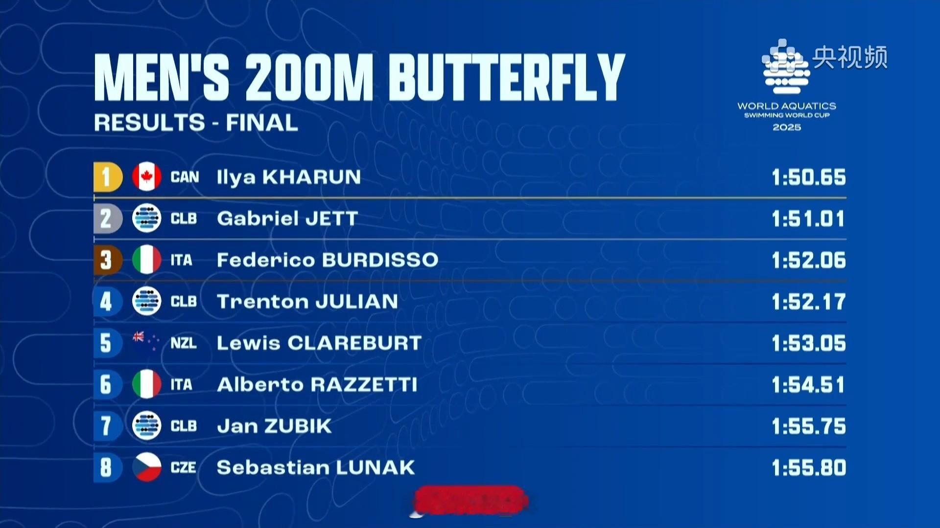 短池游泳世界杯卡梅尔站 男200蝶决赛