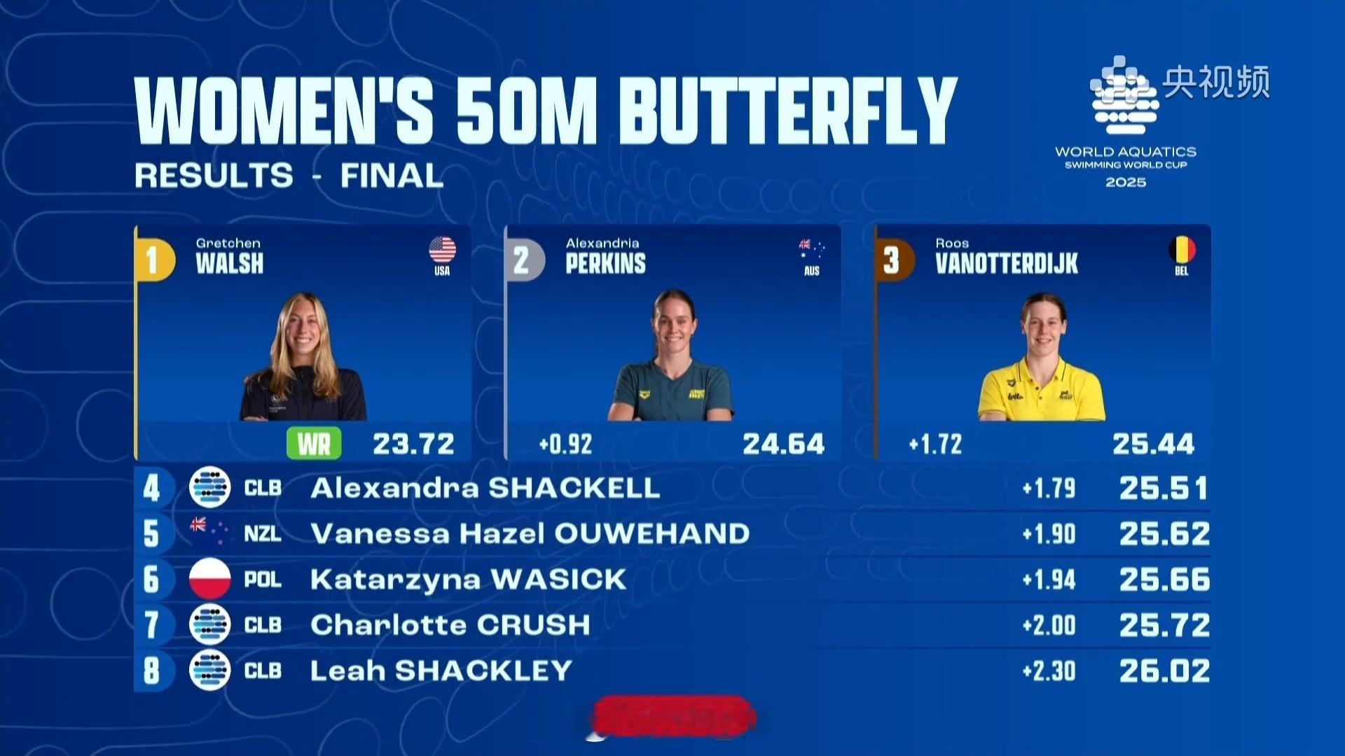 短池游泳世界杯卡梅尔站 女50蝶决赛