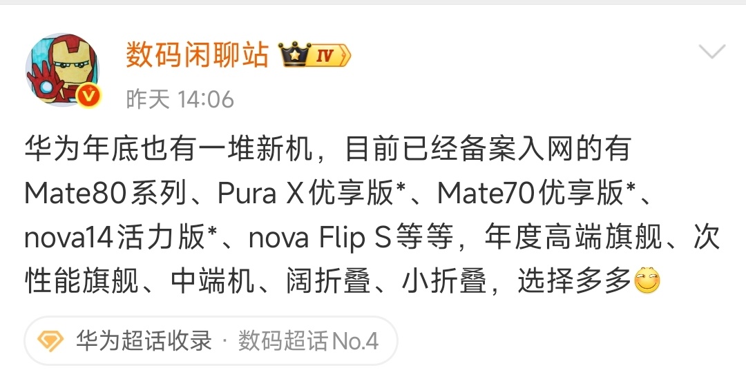 数码闲聊站[超话] 华为年底新机潮来袭,多系列布局覆盖全价位!