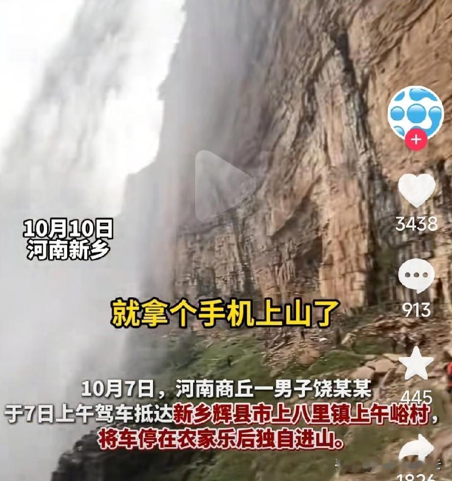 徒步去新乡南太行失联的男子,当时是穿着红衬衣,蓝色西装外套进山的。这就奇怪了,对