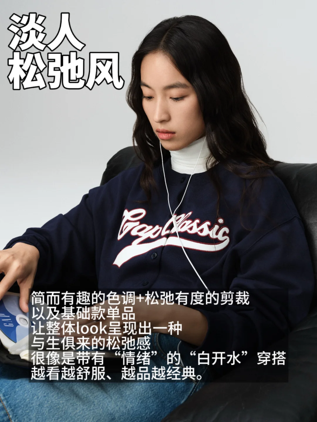 2️⃣重舒适,也重风格:简约色彩+随性的卫衣、水洗牛仔👖等搭配,无声中流露好品味。