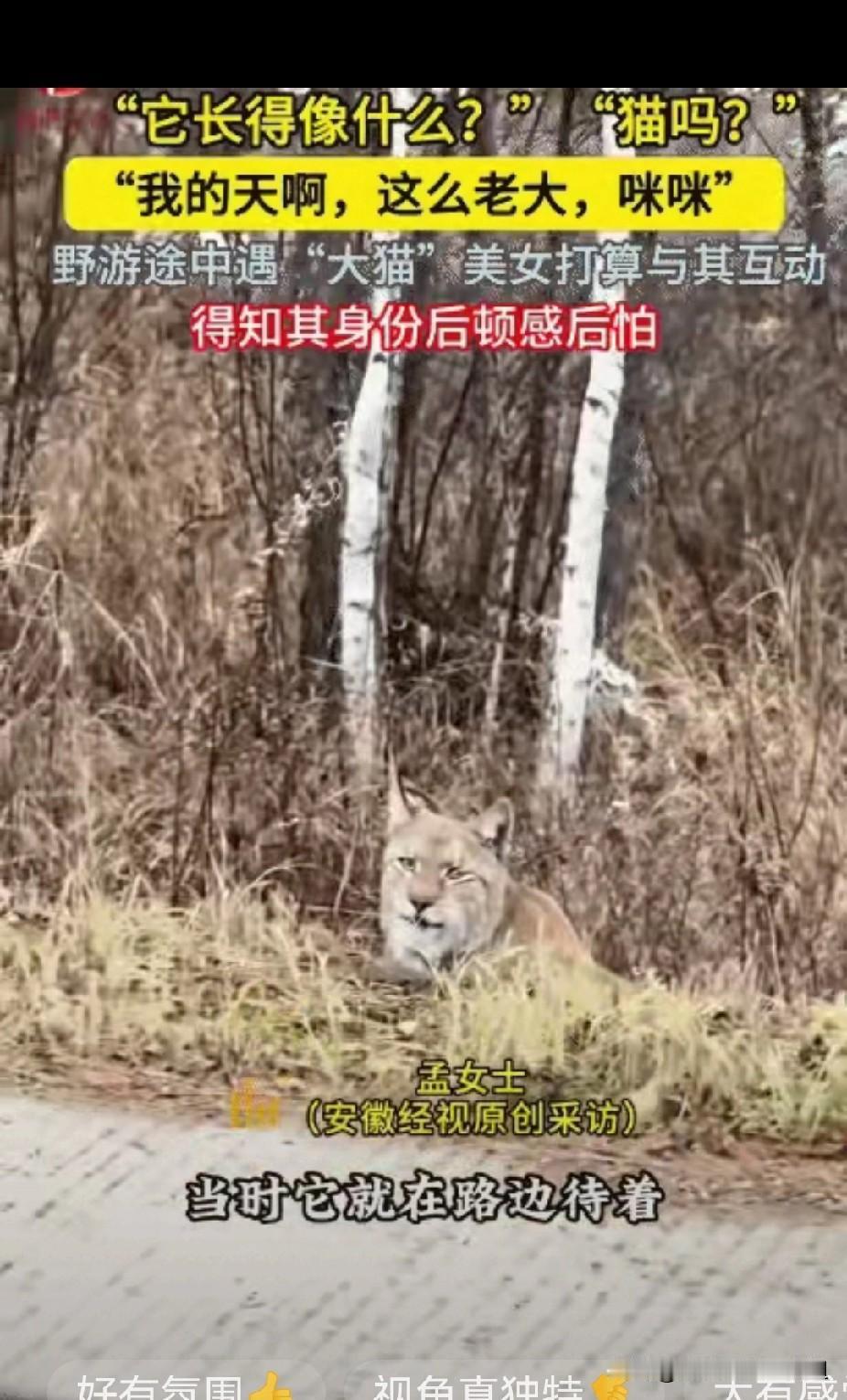 “它长得像什么?猫?”黑龙江大兴安岭,女子野游途中遇“大猫”,不料,对方起身后,