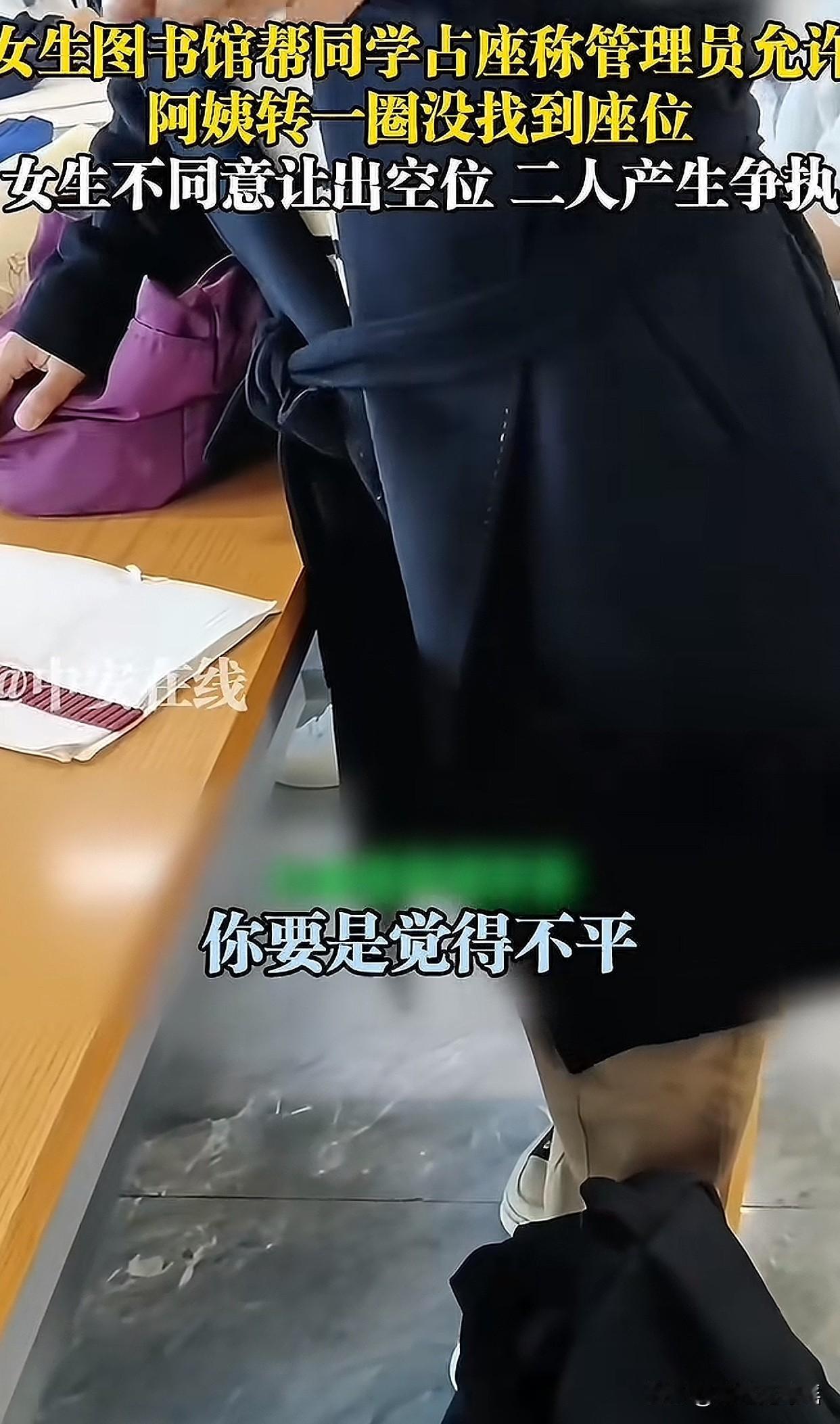 “真的很离谱!”山东聊城某图书馆,一女孩帮朋友占座位,有位阿姨想坐却被拒绝,两人