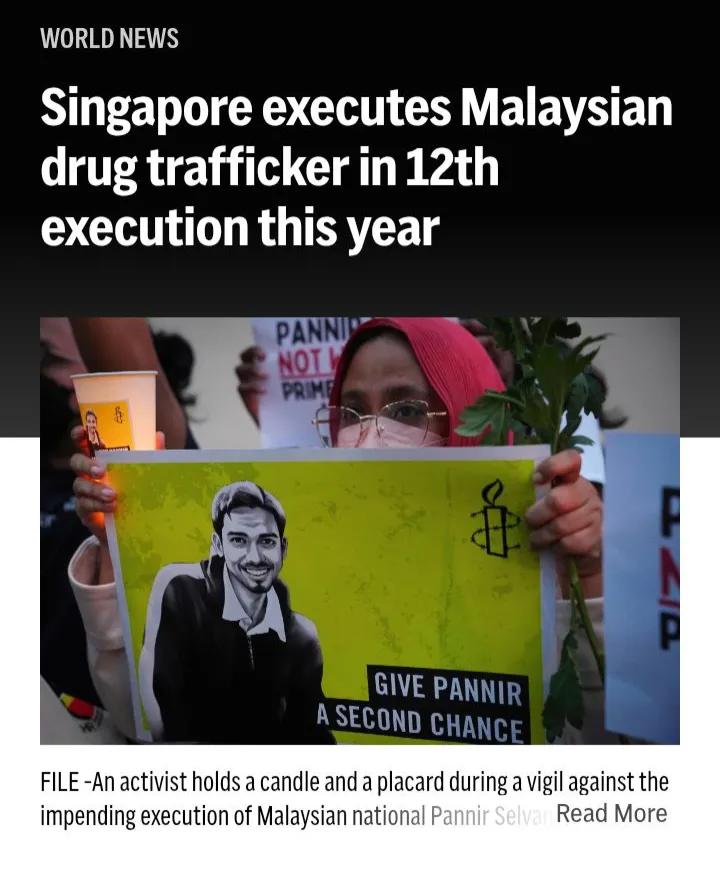 新加坡监狱于上周三处决了一名马来西亚贩毒者,这是两周内的第二次行刑,也将该城邦今年的行刑人数增加到12人,尽管面临废除死刑的压力。 新加坡反对死刑活动人士韩洁婷(Kirsten Han)证实,38岁的潘尼尔·塞尔瓦姆·普兰塔曼在樟宜监狱被执行死刑。 韩洁婷陪同家属,她表示家属已从监狱领取了潘尼尔的个人物品。潘尼尔于2014年因持有52克(约1.8盎司)海洛因被捕,并于2017年被判死刑。他原定于二月执行,但因法律事务待决而获得了暂缓执行。 马来西亚警方在9月27日曾对潘尼尔进行讯问,律师表示他提供了有关将毒品交给他的人士的信息。这让人们希望他的行刑可能因新调查而再次推迟。但马来西亚内政部周二表示,潘尼尔并未提供任何新的线索供警方进一步调查。 在法院驳回最后上诉且未获得总统特赦后,他的行刑得以执行。这是继同为马来西亚人的达奇纳穆尔希·卡塔亚(Datchinamurthy Kataiah)于9月25日被处决后的两周内第二次行刑。活动人士称,潘尼尔是今年迄今在新加坡被处决的第四名马来西亚人,也是第12名被处决的人,其中大多数是因毒品相关罪行。今年迄今行刑人数已经超过2024年全年9人的总数。 该城邦仍有40多人被判死刑。 “新加坡继续以毒品管控的名义残酷地执行更多死刑,这是不可辩护的,”国际特赦组织死刑顾问奇亚拉·桑乔里奥周三在一份声明中表示。“然而,没有证据表明死刑具有独特的威慑作用,也没有证据表明它对毒品的使用和供应有任何影响。” 新加坡严格的毒品法规定,任何被抓到携带超过15克海洛因或500克大麻的人,将判处死刑。批评者称,这条法律只针对低级贩运者和快递人员。 但新加坡政府则辩称,这对公共安全至关重要。潘尼尔的家人、他的律师和各类权利组织指出,新加坡法院已认定他只是运送毒品的快递员。潘尼尔本人曾说,他不知道自己在携带毒品。 然而,由于检察官拒绝向潘尼尔出具实质性协助证明书(证明他协助了调查,这本可挽救他的生命),法院不得不判处死刑。活动人士称,潘尼尔是六个孩子中的老三,他的父亲是一名教会牧师,同时以卡车司机维持生计。他热爱音乐,成长过程中曾在教会乐队中演奏。 在狱中,潘尼尔写下了关于死囚生活的痛苦以及对第二次机会的希望的信件、歌曲和诗歌。他的家人分享了他的一些歌曲,这些歌曲由几位马来西亚歌手演唱。