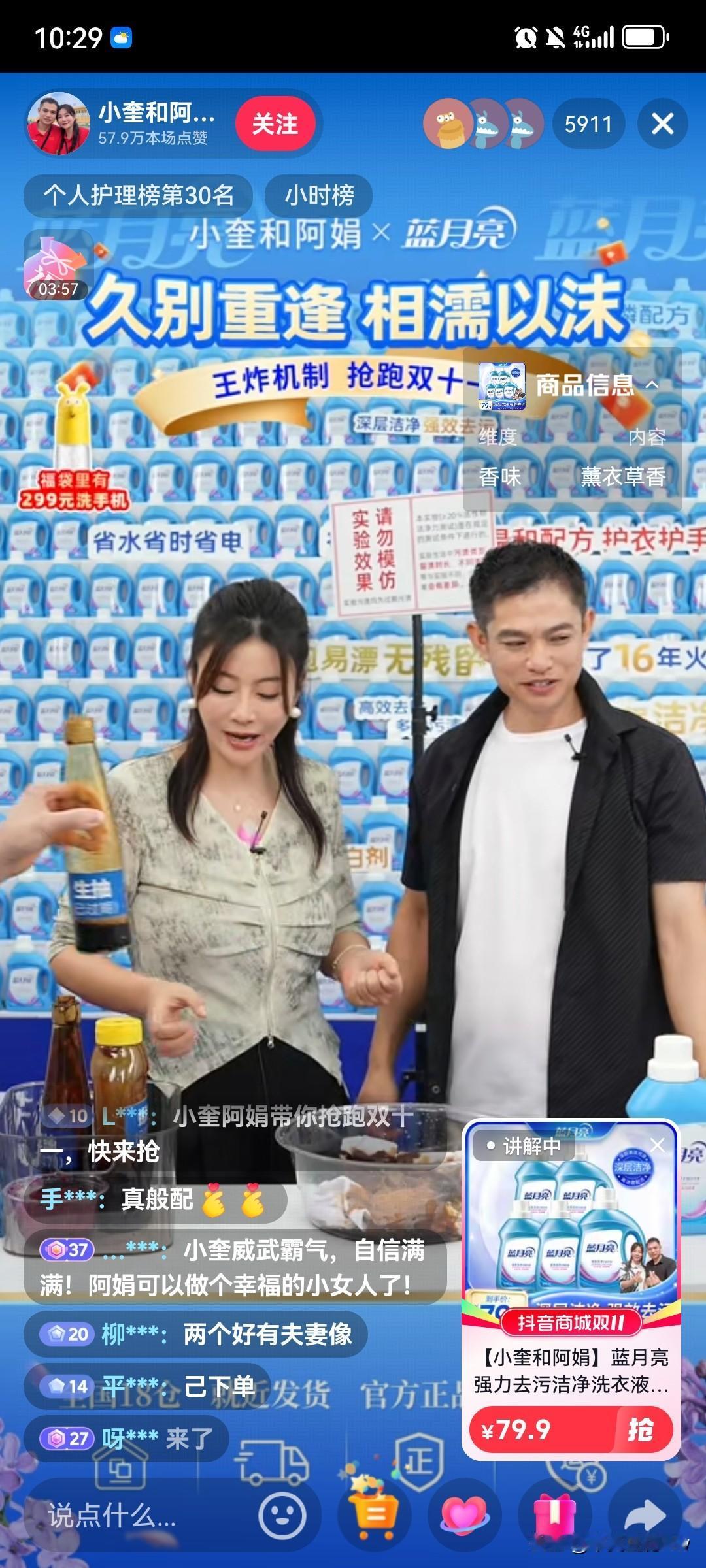 小奎真的是蜕变的太快了,从第一次跟海哥卖货一天下来,听不到几句话,到现在自己能独挡一面了,阿娟今天都给他站台多一些,说话都很少,今天卖蓝月亮的洗衣液,竟然能卖上一万+的订单,整个直播间人气一直在线,这一成绩简直像一颗突然炸开的惊喜炸弹,着实让人惊掉下巴。要知道小奎最初上播时,面对镜头紧张得像一只被扔进陌生笼子的小鸟,手足无措,讲解产品也像一辆破车,磕磕绊绊。可如今,他在直播间里自信得像个凯旋的将军,对蓝月亮洗衣液的成分、功效、使用场景等介绍得那叫一个门儿清,还时不时穿插一些幽默风趣的小段子,把直播间的气氛搞得像烧开了的热水,热气腾腾。 海哥此时看到他的蜕变应该是满是欣慰的吧?就像看着自家孩子考上了清华一样的高兴吧? 我看了一会直播间,阿娟一直在夸小奎厉害,也一直在给小奎爱的鼓励,时不时抱着小奎,小奎在介绍产品阿娟一直不是在递水就是帮忙擦汗,我还特意留言了,说他们是唯一一对在直播间里最黏腻的夫妻了吧!看了很多夫妻档的直播间,就数他们两个在直播时还是会考虑到对方,为他们点赞!原本阿娟是直播间的顶梁柱,可这次甘愿为小奎站台,就是看到了小奎像潜力股一样的巨大潜力。 直播间里的粉丝们也纷纷在弹幕上留言,夸赞小奎进步神速。有人说:“小奎,你这是要起飞啊!”还有人表示以后就认准小奎推荐的产品了。小奎的自信也是高涨起来了,所以,我觉得小奎娶了阿娟是捡到了宝! 虽然有很多人会说阿娟不能给小奎生个宝宝啥的,小奎亏大了这种话题,我觉得真的一点都不亏啊!虽然说没有小孩,但是小奎自己的人生却发生了翻天覆地的变化,从一个穷小子变成现在的网红,带货一次可能都比他结婚之前赚的还要多呢!人啊,要学会知足,格局要打开,我觉得如今的小奎不管生活还是哪个方面,都会比之前好太多太多了!