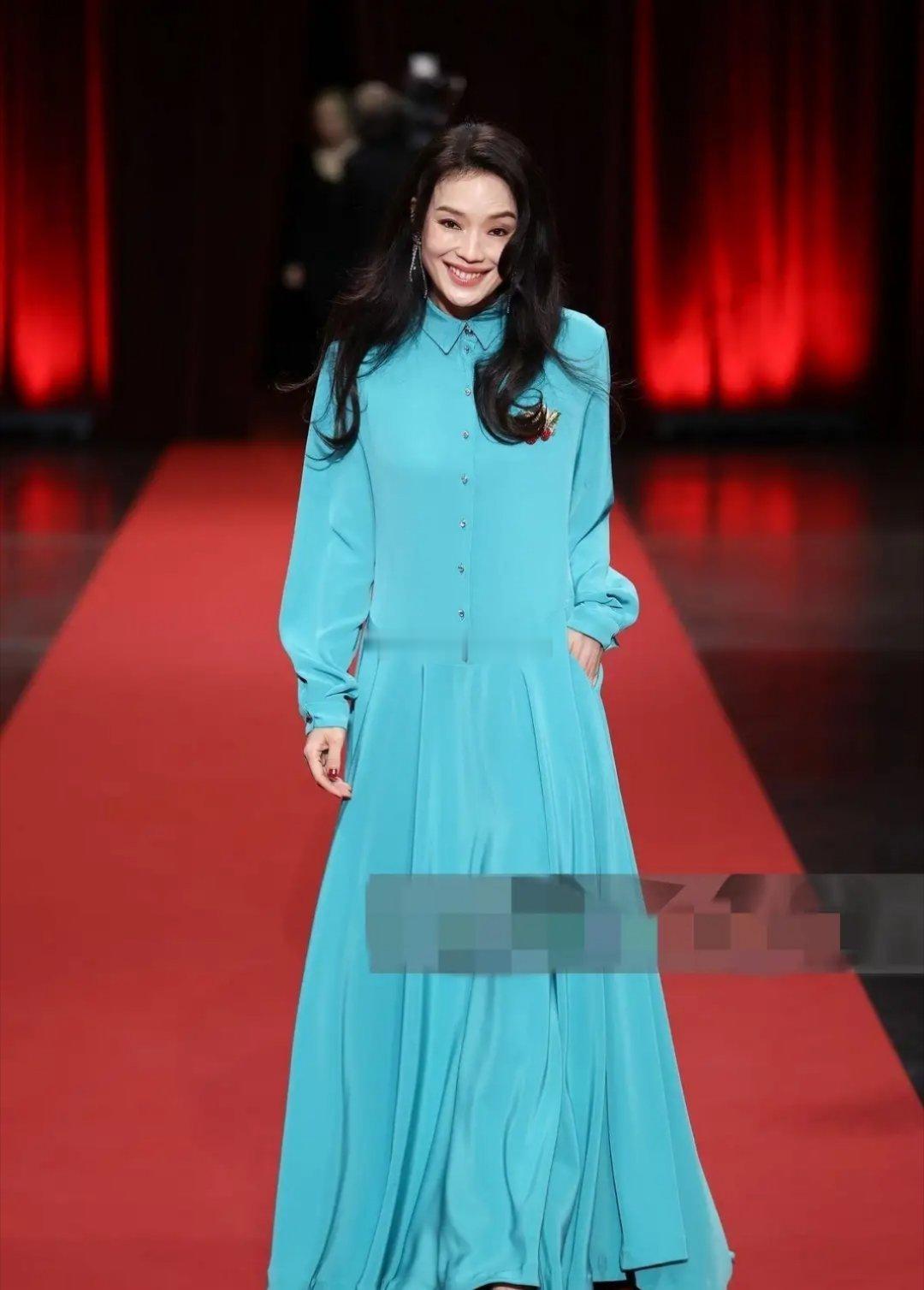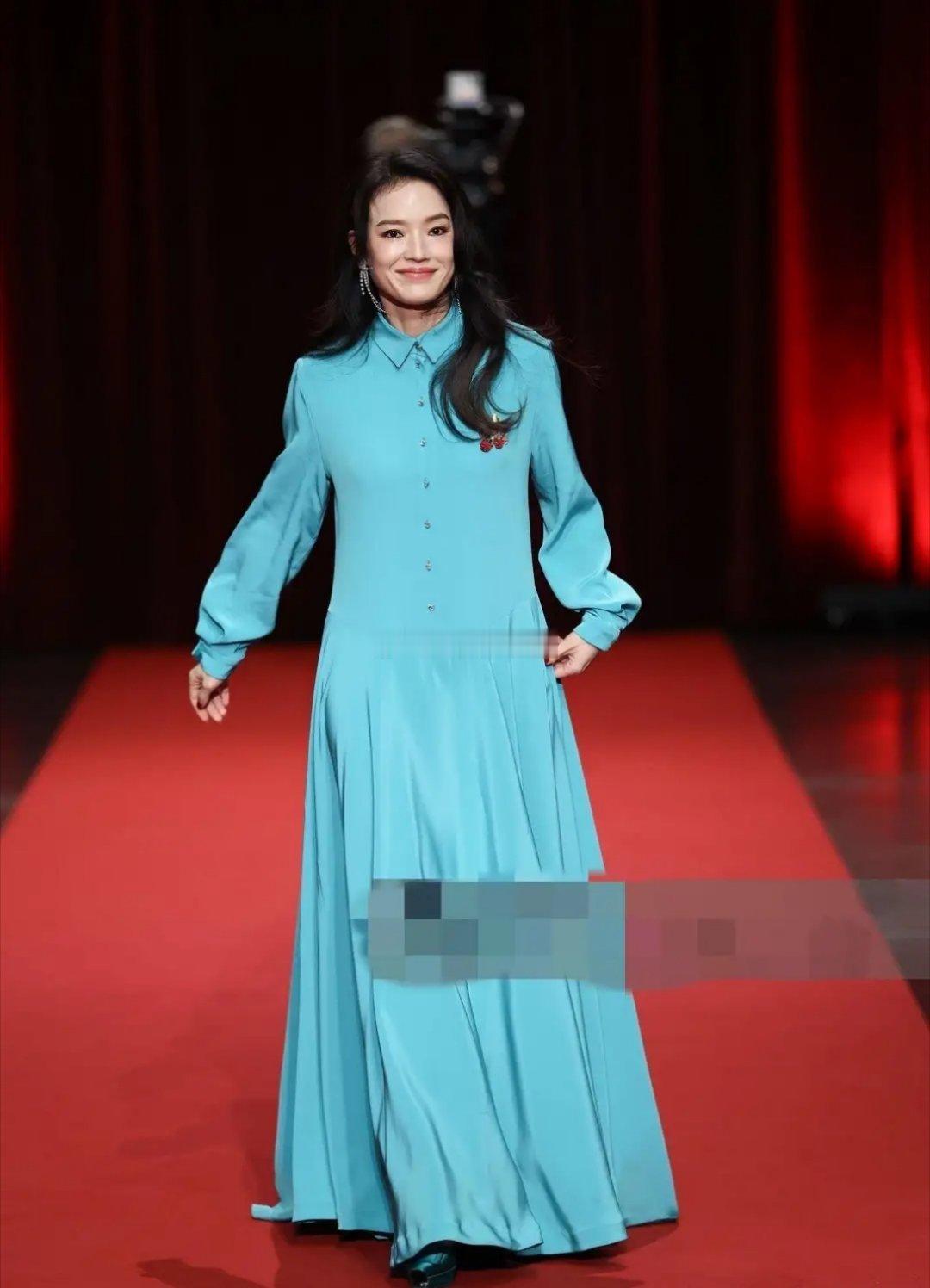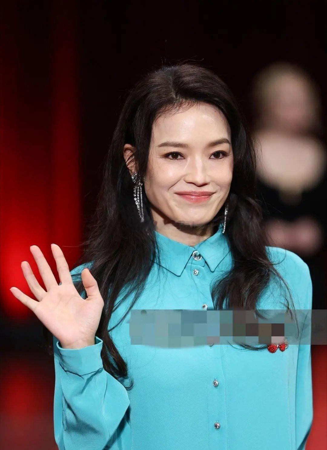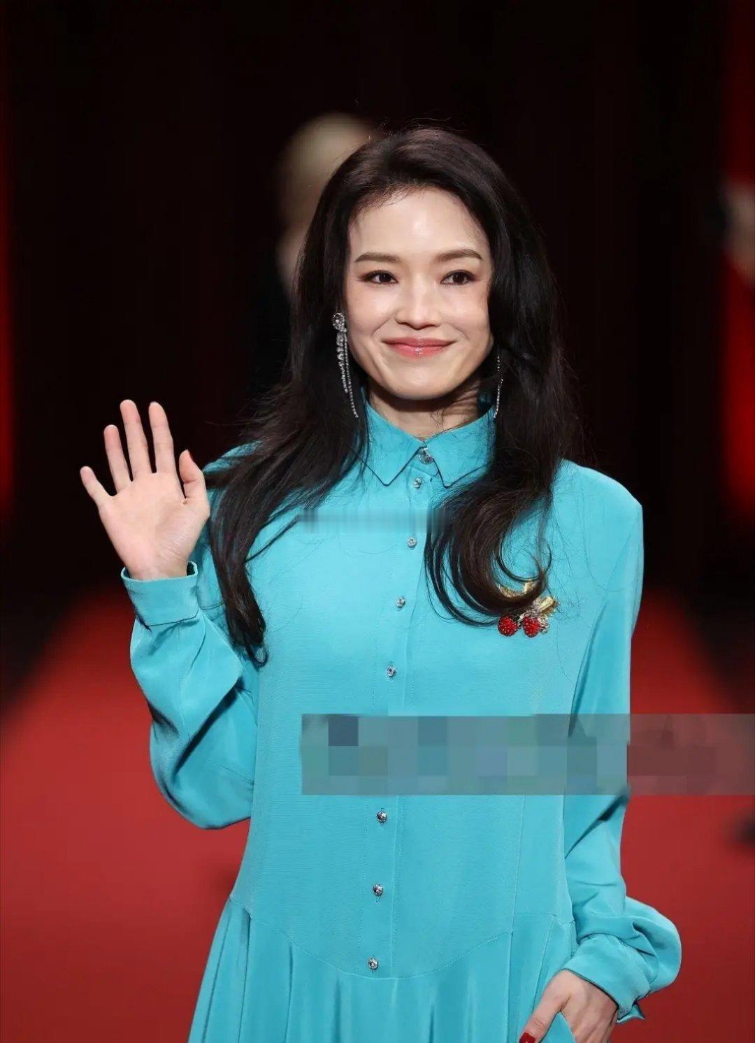 舒淇亮相卢米埃尔电影节开幕式红毯,冰蓝色抓褶裙,松弛又时髦