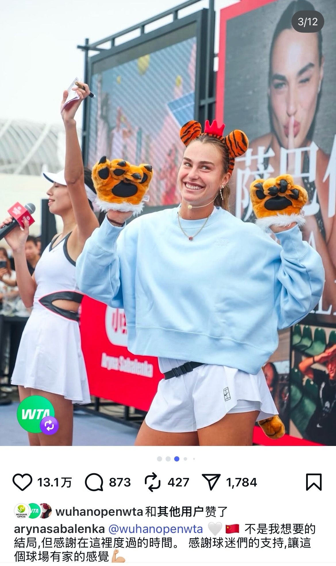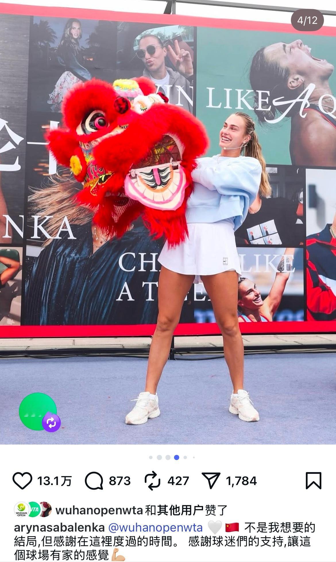 萨巴伦卡发文告别武汉,虽然不是她想要的结果,到大家的热情让她在这里有家的感觉!