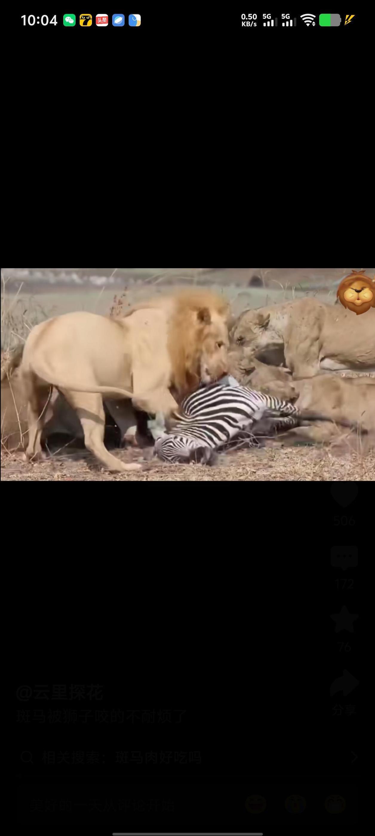 狮子真的太残忍了。 一头活的斑马, 没有杀死, 没有煮熟, 就真接活啃, 吃得斑马死去活来。 狮子太残忍了。