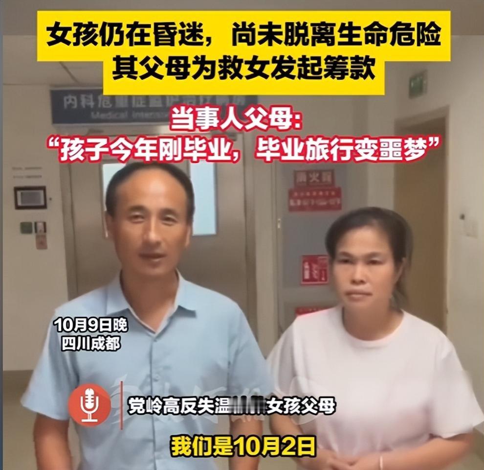 党岭的雪山没困住她,可 “成年不担责” 的争议,比高反更扎心 ——20 岁的小林躺进华西 ICU,家里还有钱的情况下,却先向网友伸手要治疗费。 作为江苏盐城独女,小林刚卫校毕业,爱旅游骑行,还常去酒吧。她把党岭徒步当毕业礼,没跟父母多商量,就和青年旅馆认识的两男一女上山。10 月 2 日,4700 米的卓雍措湖垭口,高反失温突然袭来,她直直倒下,还好驴友救助、民警轮流背下山,捡回生机。 可后续操作让人皱眉:20 岁早该对自己负责,高海拔徒步不做风险评估,出事后父母不追究同伴,却在治疗刚几天、家里还没到“破产”的情况下急着众筹。没找人借钱,没整理资产,更没借网贷,还提 “农村人”,转头就向网友要钱 —— 这哪是求助,是把 “成年选择的代价” 甩给陌生人。 网暴昏迷的她不对,但家里能承担却要网友买单,更消耗善意。卫校毕业的她该懂高反风险,成年从不是空话:选了徒步就要扛风险,出了事先动自家资源。别让一场本可规避的意外,凉了真正帮困境者的心 —— 网友的钱,该给更需要的人。