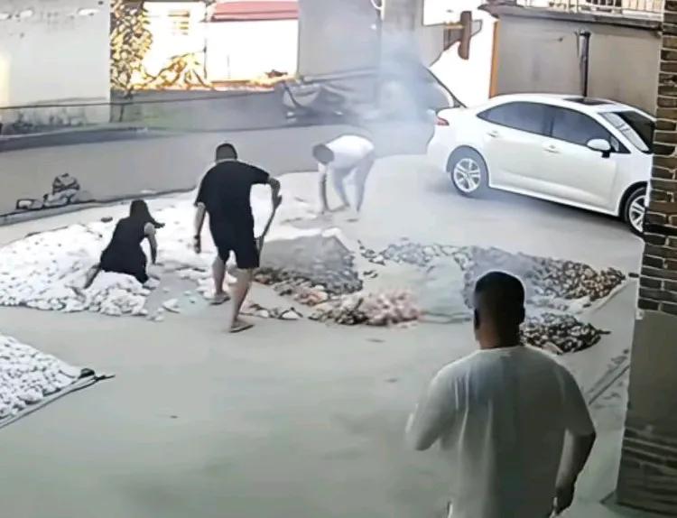 熊孩子点燃院里晾晒的棉花,只见奶奶刚把棉花晾开,转身回屋了, 小男孩偷偷的在旁边, 用打火机点燃了棉花, 他点着后可能觉得不对, 立马用脚踩踩了一下, 没踩灭棉花燃烧的速度太快,他接着踩越踩棉花燃烧的越快, 不一会儿就烧焦了一大片, 家长看到后立马跑过来拯救棉花, 但是那一半已经救不过来了,爸爸用扫把把烧焦的部分扫出来, 剩下了一部分没烧着。 网友说,这顿揍是逃不掉了,自从安上监控后, 某些人小时候调皮捣蛋的证据被永久保留了。